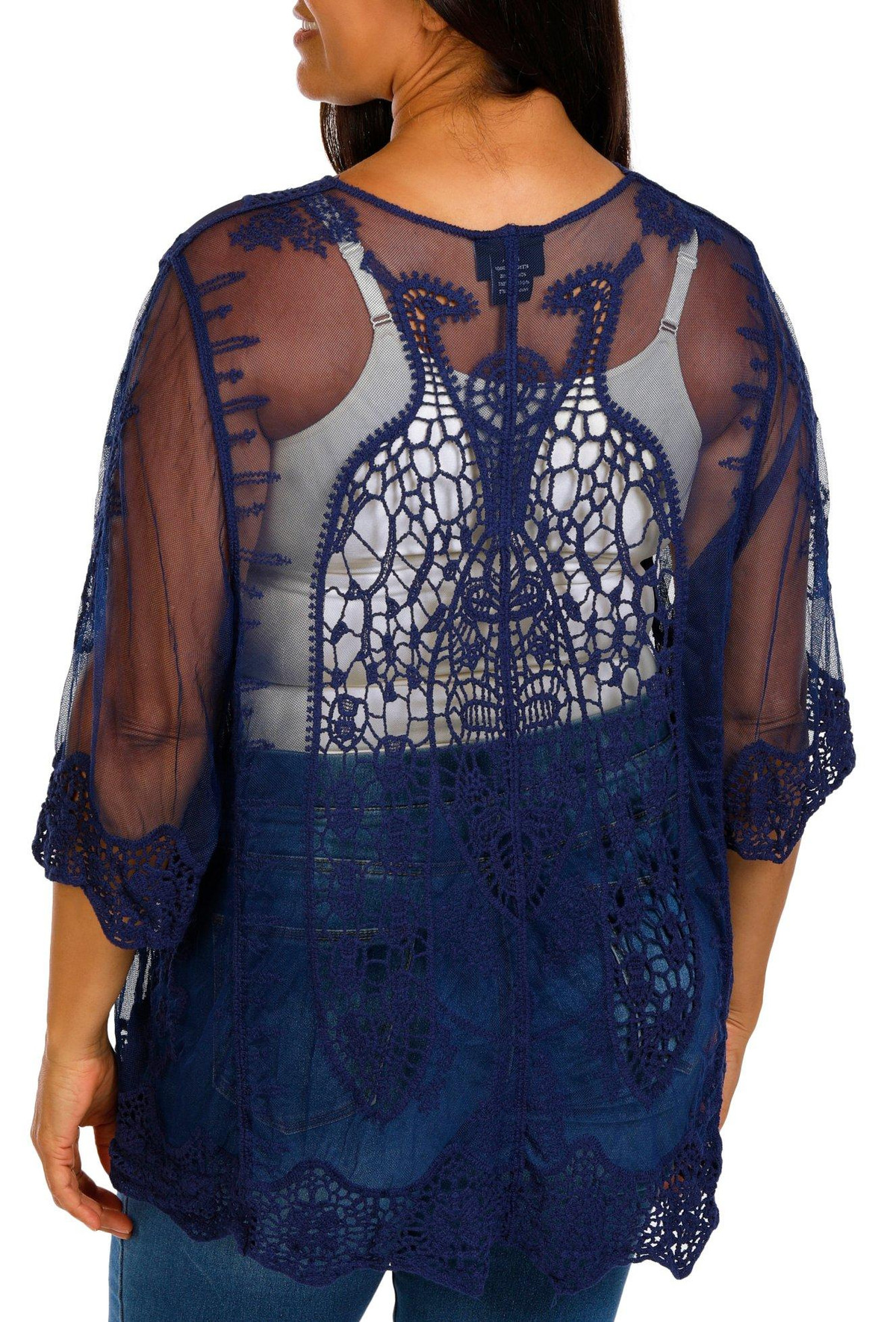This plus size cardigan features a sheer mesh fabric with delicate embroidery throughout. The three quarter sleeves add a touch of elegance while the front tie closure offers a flattering fit. Perfect for layering over your favorite outfits for a light and graceful finish. Fabrication 50% cotton, 50% polyester