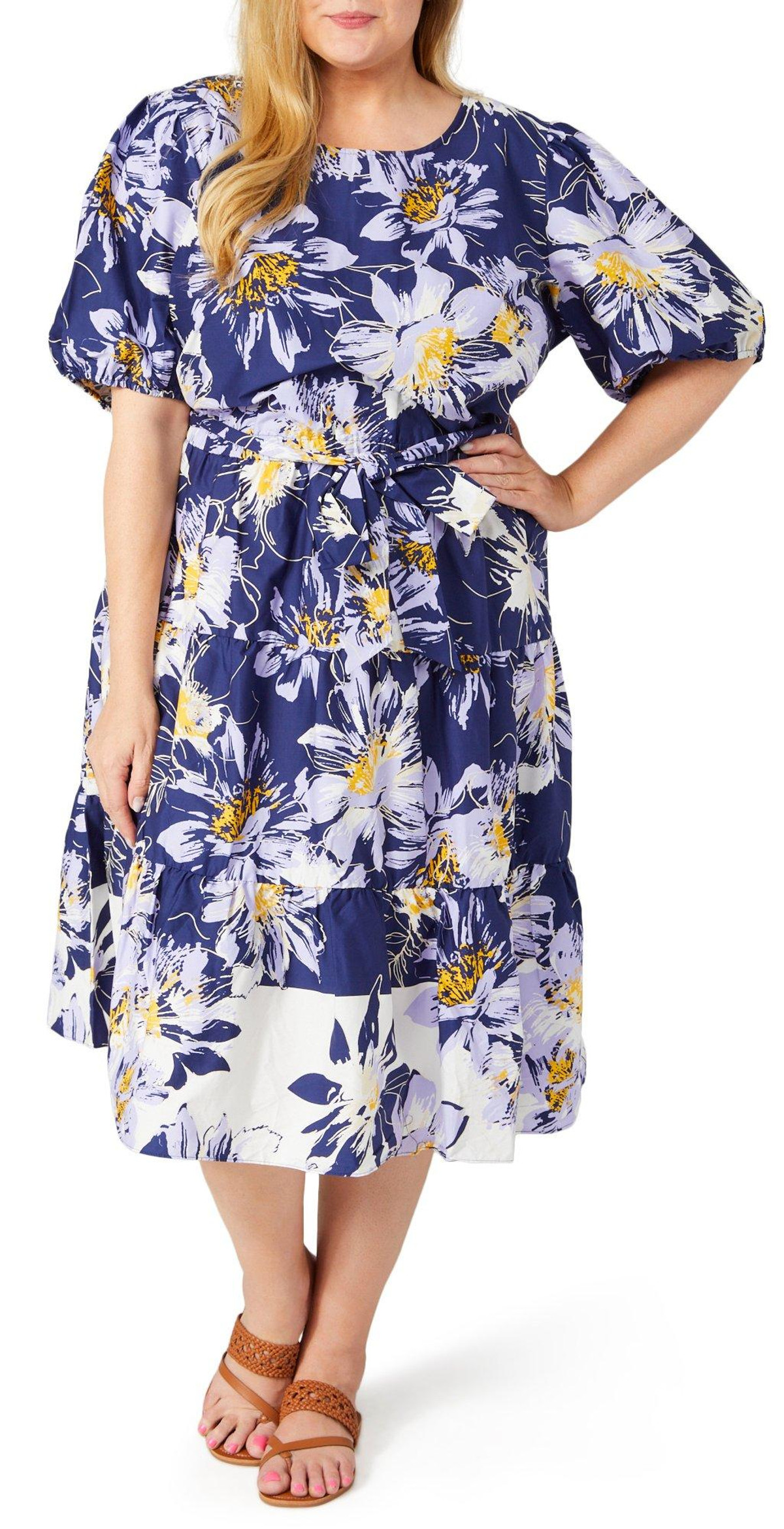 Add a touch of romance to your wardrobe with this Short Sleeve Midi Dress. Featuring charming puff sleeves and a delicate floral print, this dress exudes elegance and femininity. The waist tie allows for a flattering, customizable fit, ensuring you look and feel your best. Perfect for any occasion, this dress offers a blend of comfort and style that will make you stand out effortlessly. Fabrication is 98% cotton, 2% spandex.