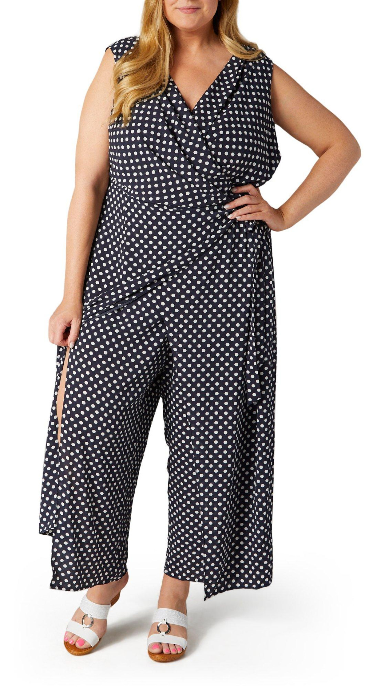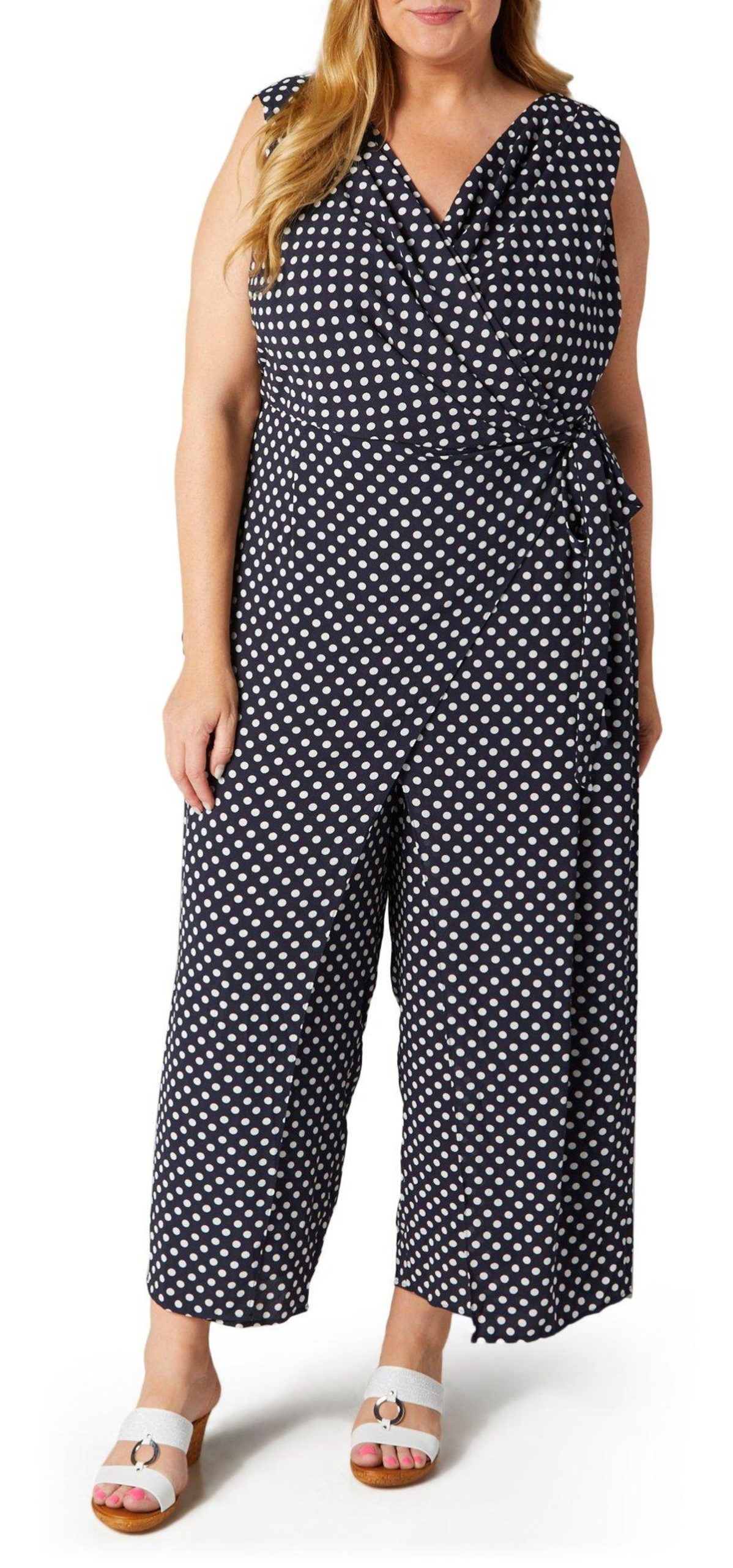 Step into playful sophistication with this Sleeveless Jumpsuit. Featuring a chic wrap style look and a flattering waist tie accent, this jumpsuit is designed to enhance your silhouette. The polka dot print adds a touch of vintage charm, making it perfect for any occasion. Whether you’re dressing up for a special event or keeping it casual, this jumpsuit offers a versatile and stylish option that will make you stand out effortlessly. Fabrication is 97% polyester, 3% spandex.
