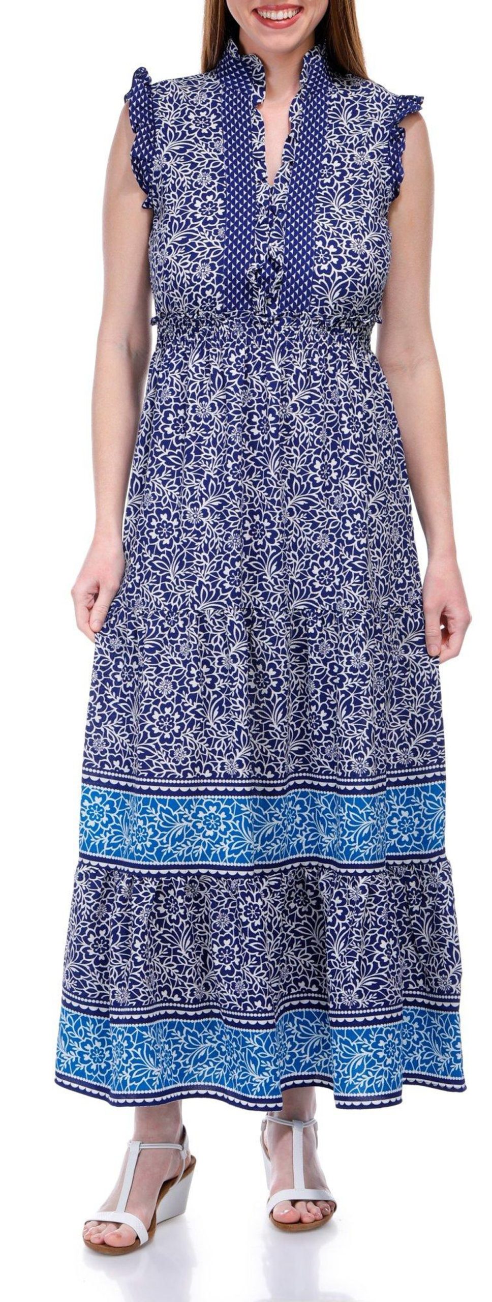 Introducing the Women’s 51-inch Short Sleeve Maxi Dress, crafted from a high-quality polyester blend. This dress features a stylish floral design that adds a touch of elegance to your wardrobe. The short ruffle sleeves provide a charming detail, while the v-neckline offers a flattering look. With a 51-inch length, this maxi dress is perfect for any occasion, combining comfort and sophistication effortlessly.
