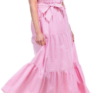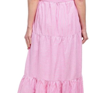 Introducing our Women’s Short Sleeve Striped Maxi Dress, crafted from 100% cotton for ultimate comfort. This elegant dress features short sleeves, a 51-inch length from the shoulder, a tiered maxi skirt, and a stylish split neckline. Perfect for any occasion, this dress combines timeless stripes with a modern silhouette to create a versatile and chic addition to your wardrobe.
