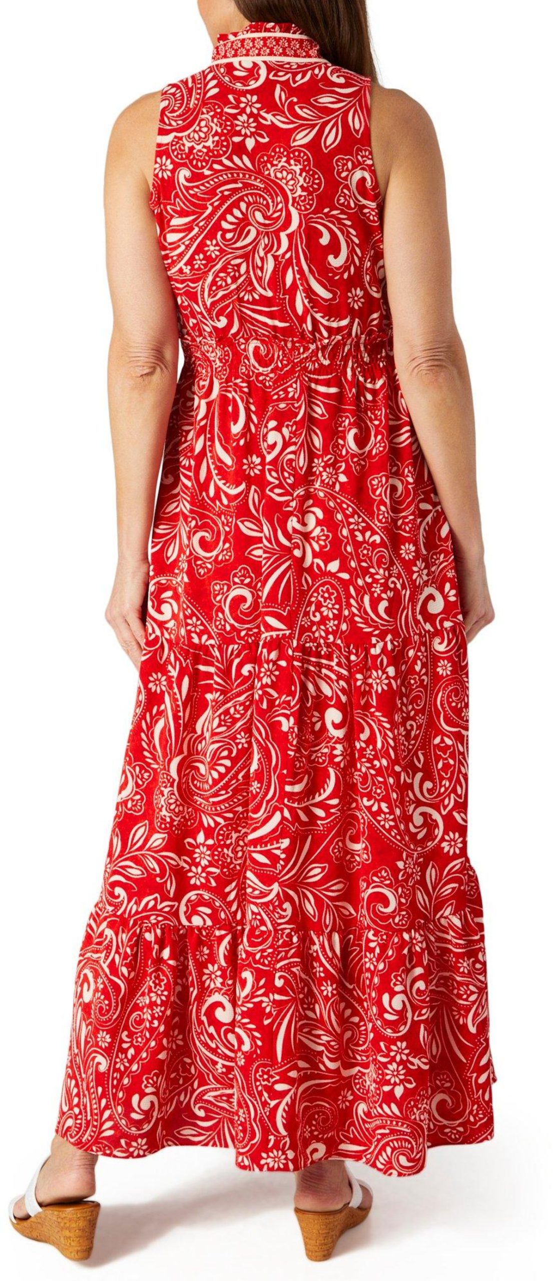 Add a touch of elegance to your wardrobe with our Women’s Sleeveless Paisley Maxi Dress. Made from a blend of polyester and spandex, this dress features a beautiful paisley print and a sleeveless ruffle design. With a graceful 52-inch length, it’s perfect for any occasion, combining style and comfort effortlessly.