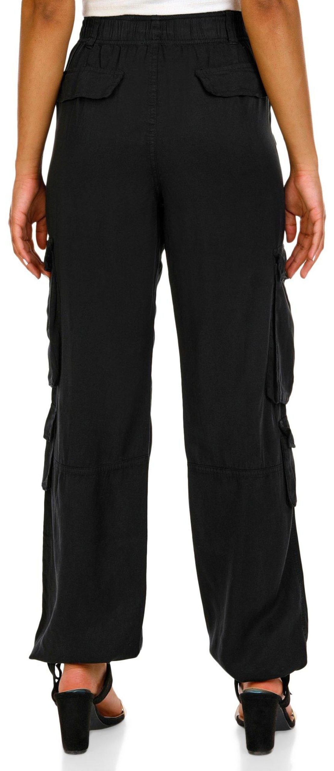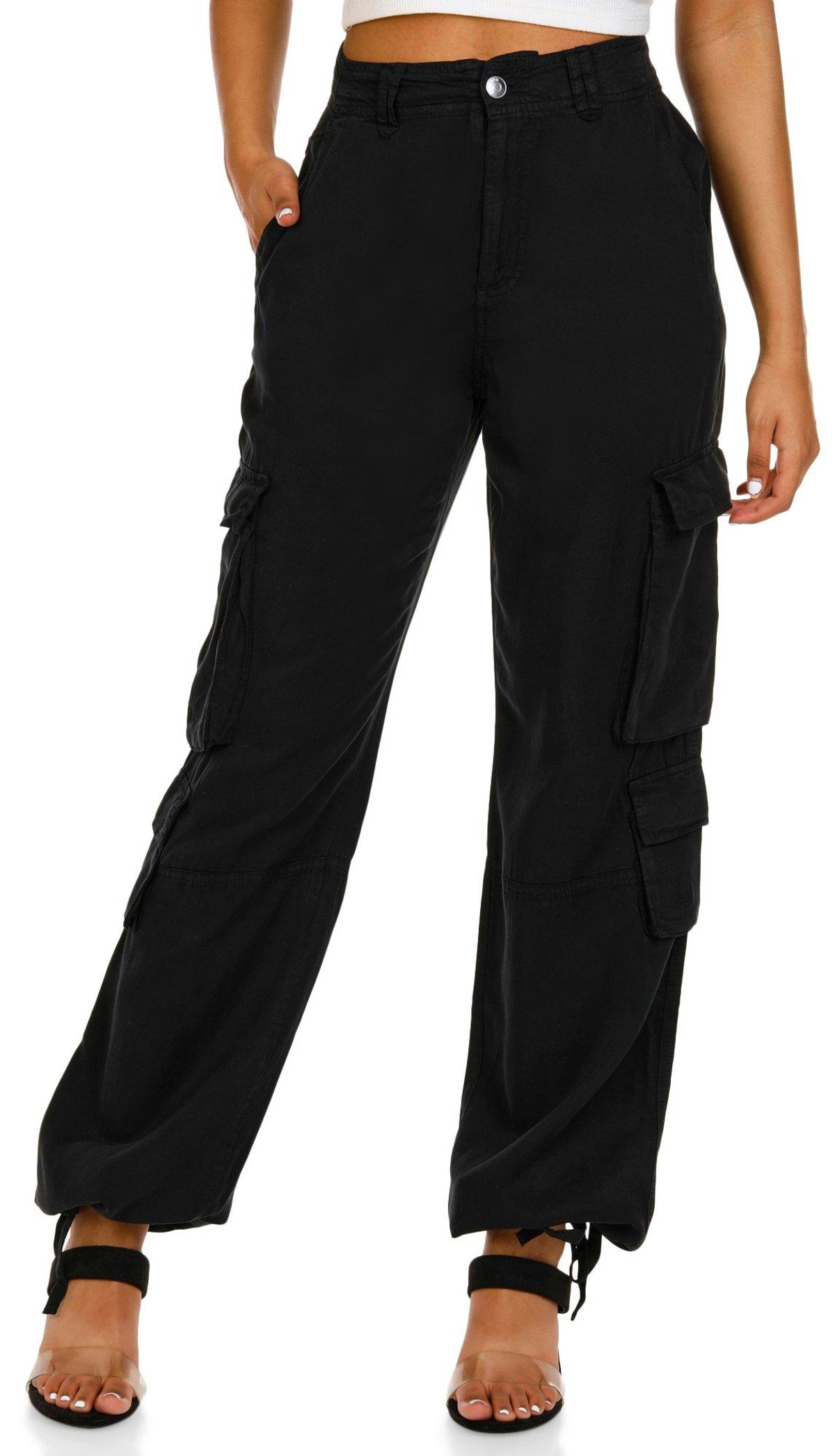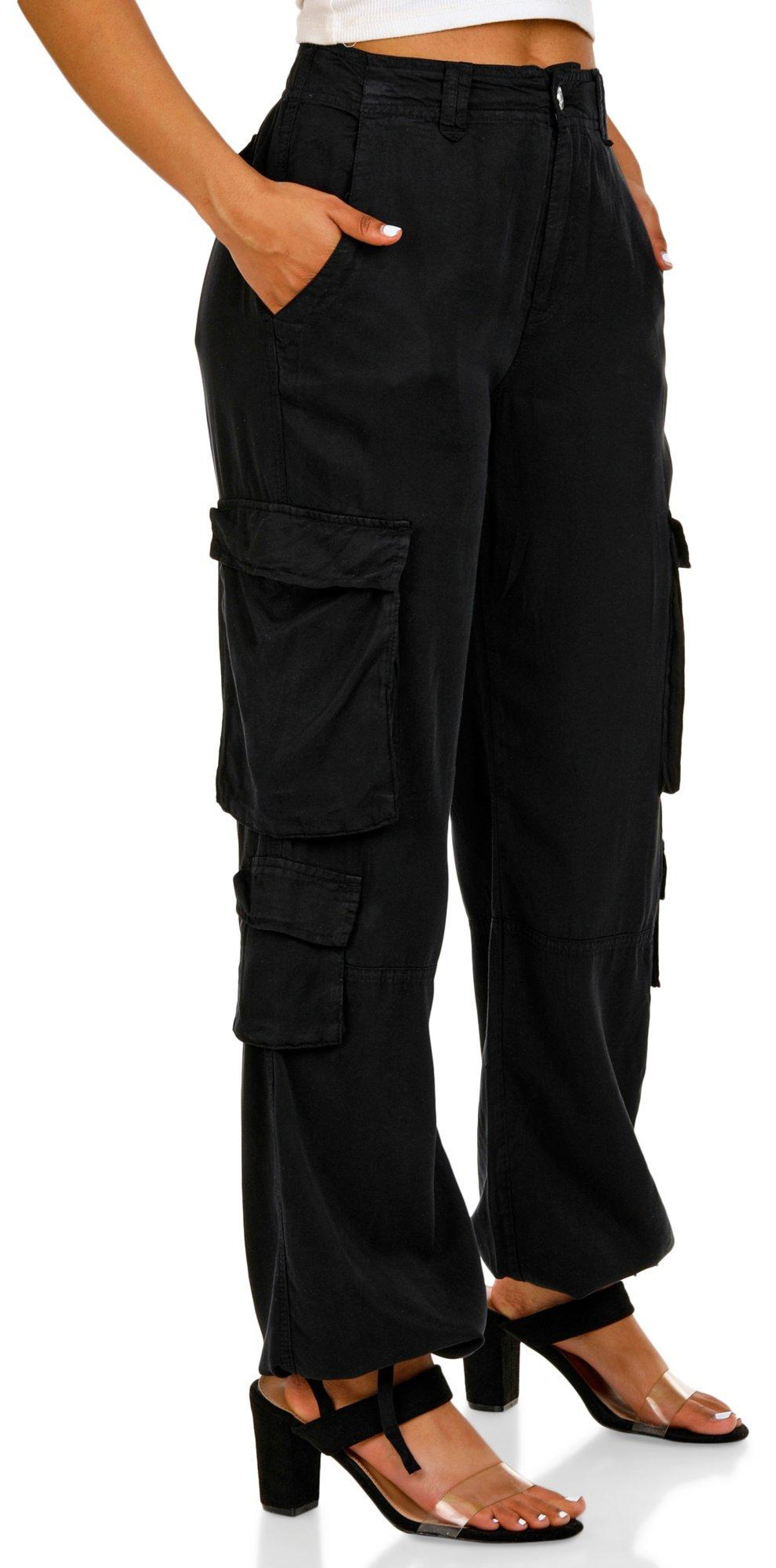 Upgrade your casual wear with our Juniors Tencel Cargo Joggers. Made from 100% tencel, these joggers offer a soft and breathable fit. The stylish solid color makes them versatile for any outfit, while the button zip fly closure and elastic waistband ensure comfort and security. Featuring side slip, back, and cargo pockets, these joggers provide ample storage. The drawstring hem allows for a customizable look, making them perfect for any casual occasion.