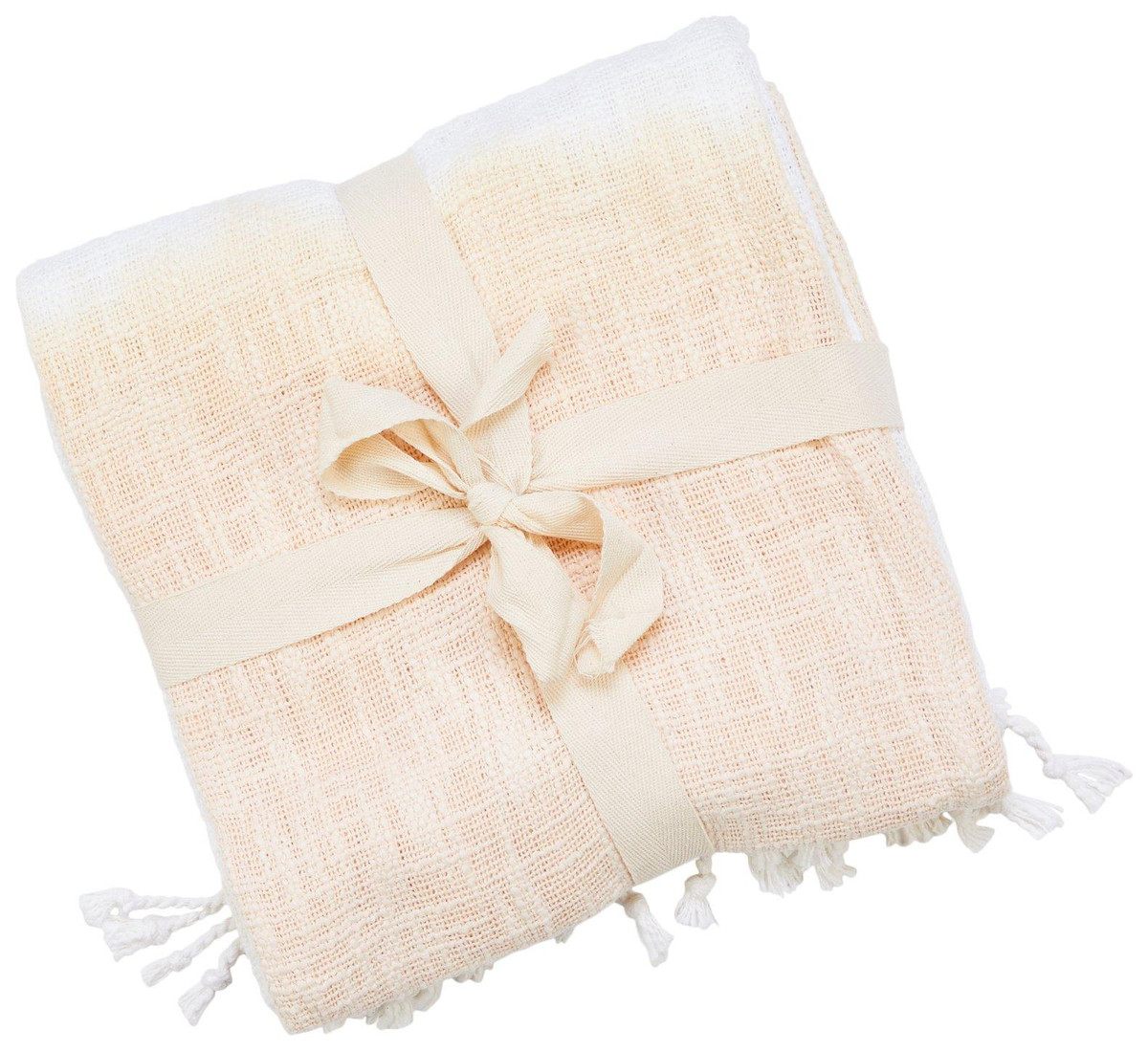 This handmade throw blanket features a stylish fringe border, adding texture and charm to any space. Made from 100% soft cotton, it measures 50 x 60 for the perfect size to drape over a couch or bed. This blanket brings style to your home décor.