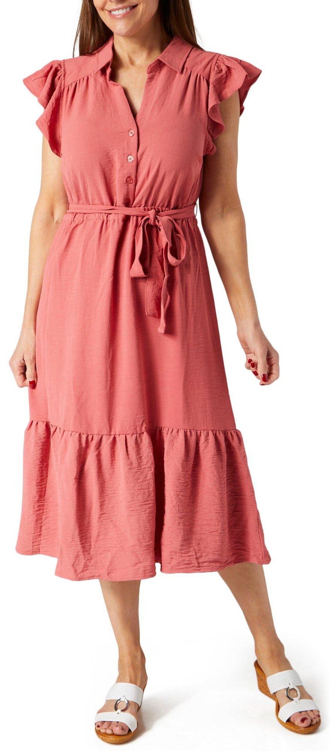 This Cap Sleeve Shirt Dress is a stylish and versatile addition to any wardrobe. Featuring a buttoned upper and a waist tie, this dress offers a flattering and adjustable fit. The cap sleeves provide a comfortable and chic look, making it perfect for both casual and semi-formal occasions. Whether paired with sandals or heels, this dress ensures you look effortlessly elegant. Fabrication is 95% polyester, 5% spandex.