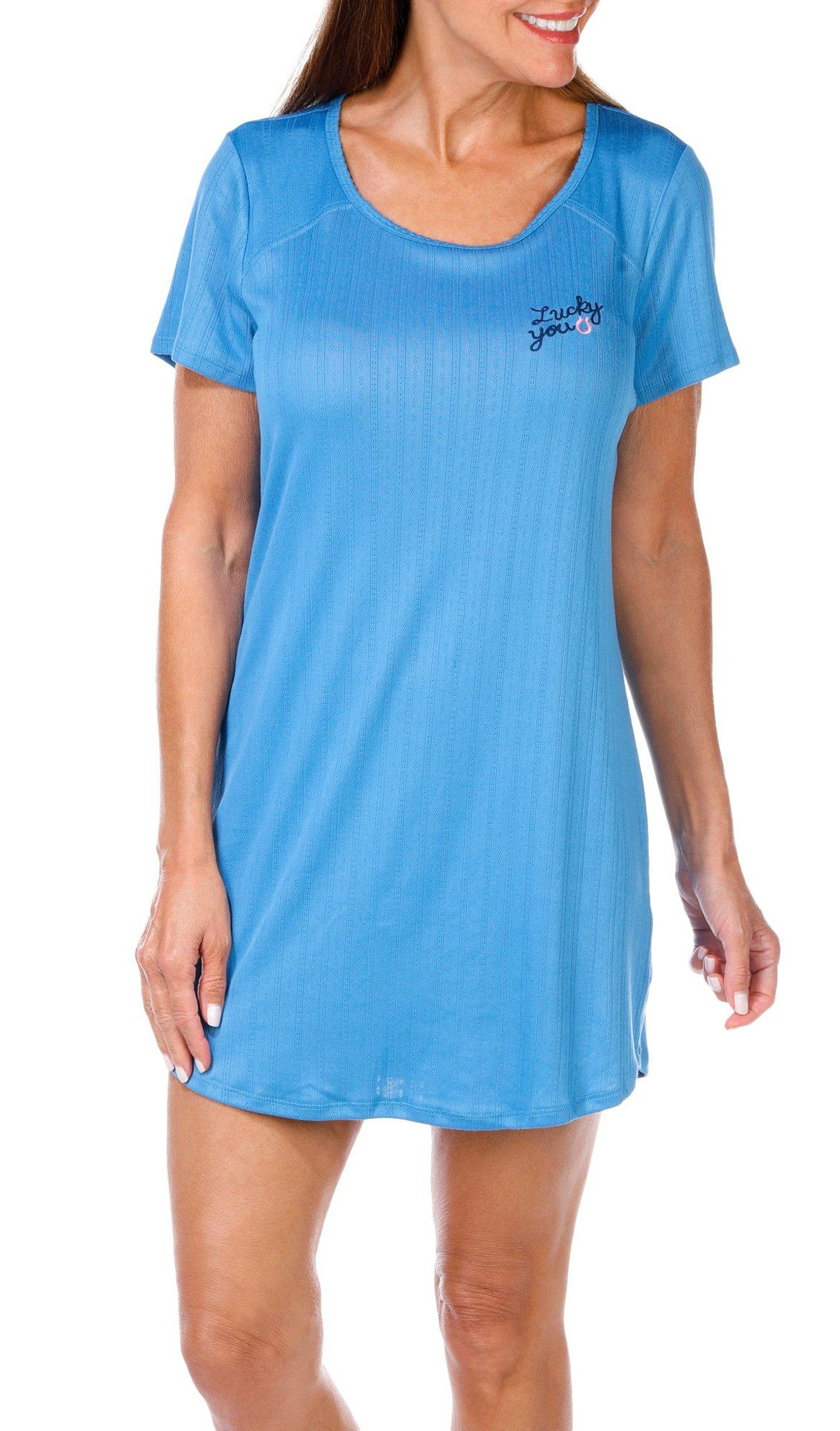 Relax in cozy style with the Women’s Short Sleeve Lucky You Sleepshirt. Made from soft pointelle fabric, it features short sleeves, a round neckline, and an embroidered Lucky You script on the chest corner for a charming, laid-back look. Fabrication 95% polyester, 5% spandex