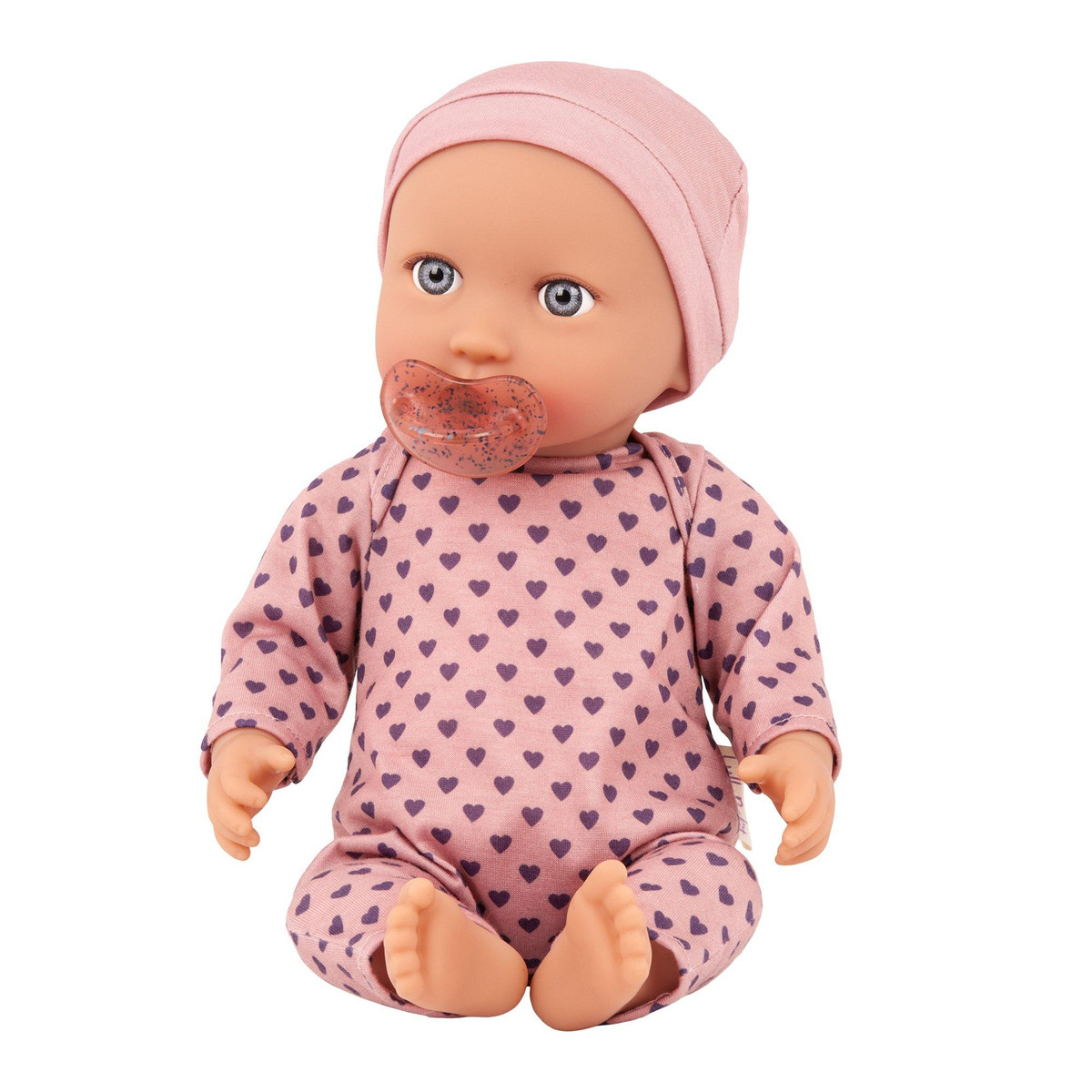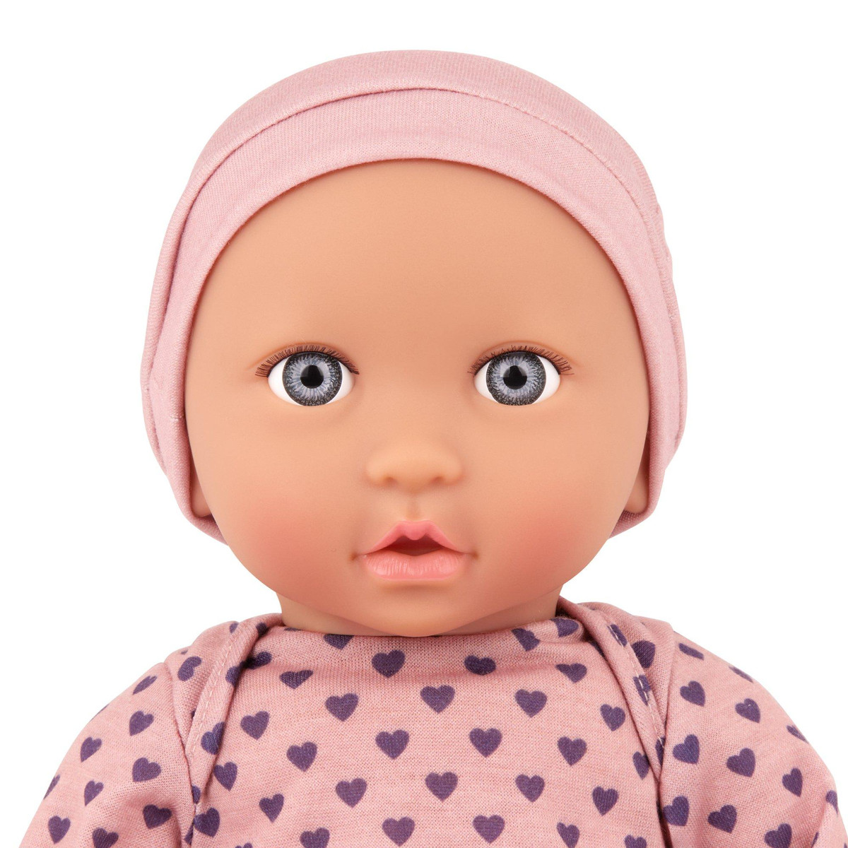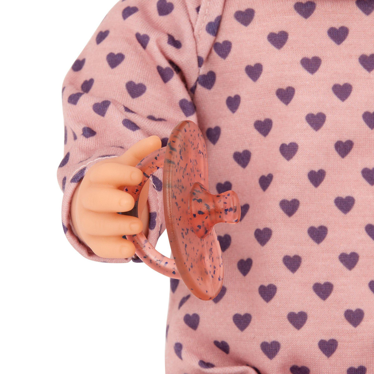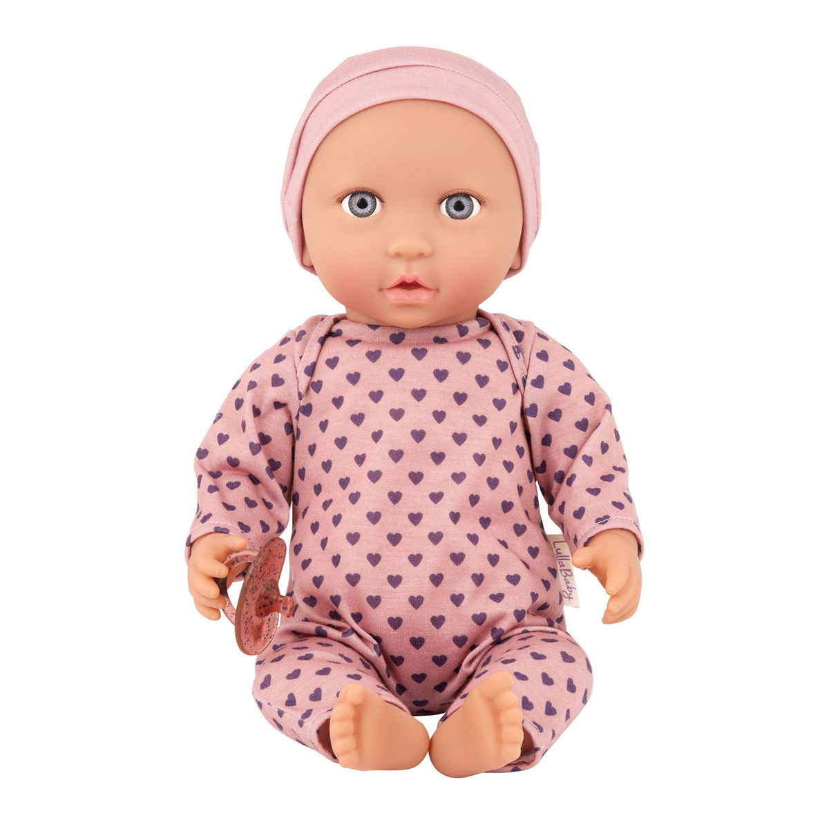 Discover gentle playtime moments with LullaBaby. This realistic 14-inch baby doll has unique gray eyes, soft-to-touch eyelashes, detailed hands and feet, and a huggable soft body to cuddle. Little hands can easily remove baby dolls pink heart-print pajama outfit and hat when its changing time. While the removable pacifier accessory lets kids soothe their baby doll. Makes a wonderful gift for kids ages 2 years old and up. Dimensions: 6.50 inch x 2.00 inch x 14.00 inch.