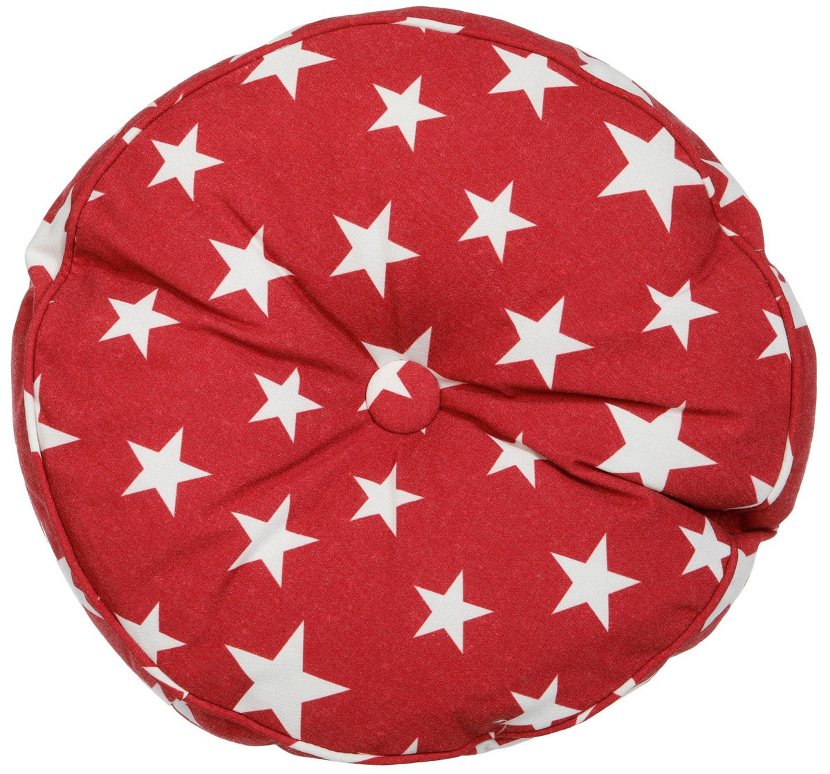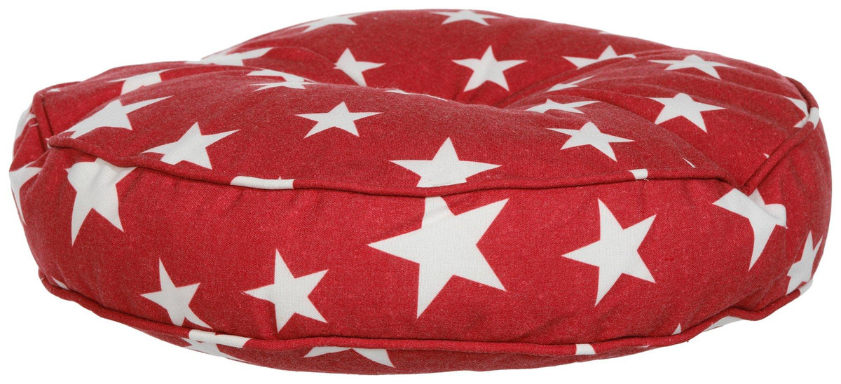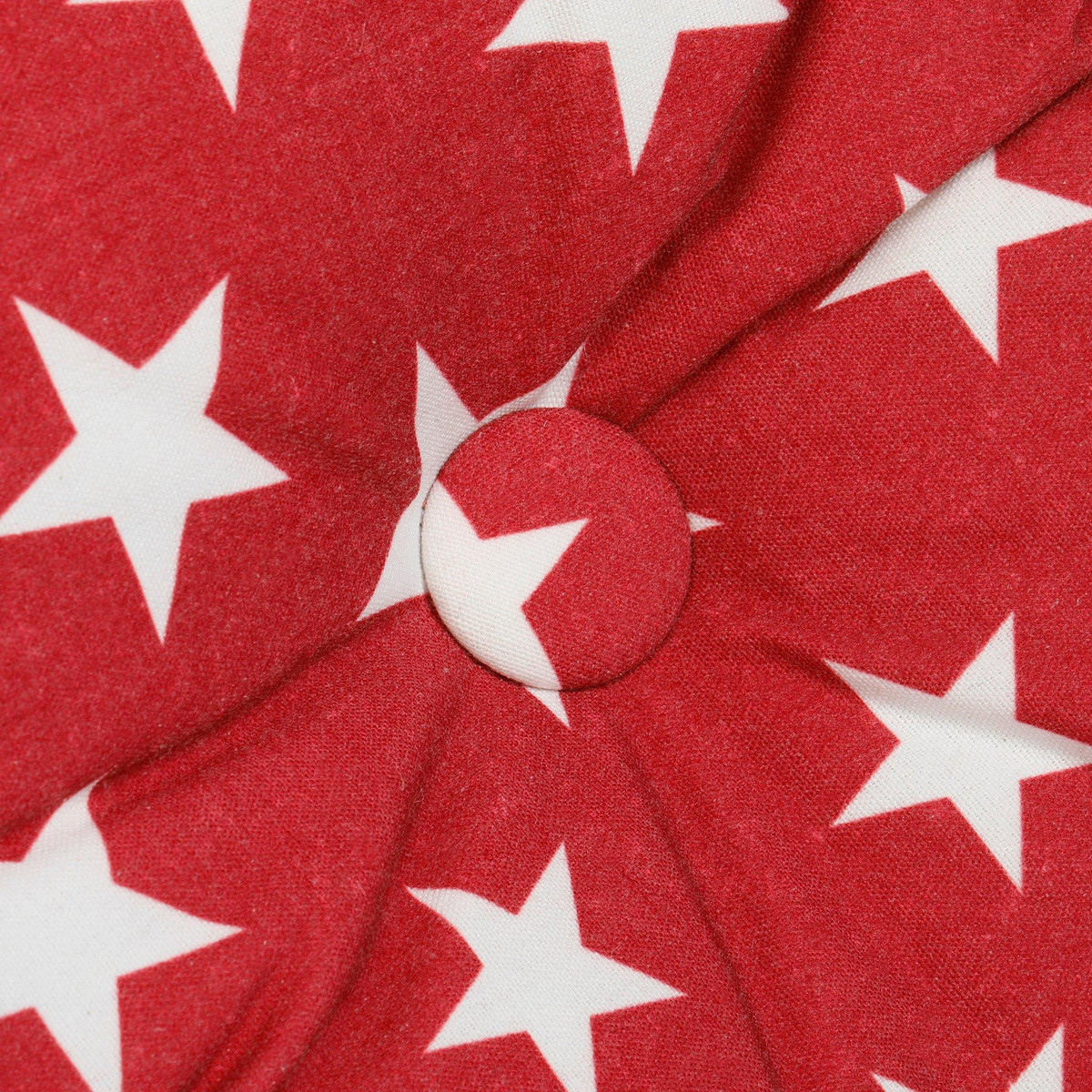 Celebrate the spirit of America with this charming patriotic décor pillow. Featuring patriotic white stars on a solid red background, it brings a cozy Americana touch to any space. Perfect for summer gatherings or year-round pride, this pillow adds warmth and character to your home with every stitch. Measures approximately 16 in round.