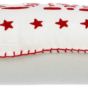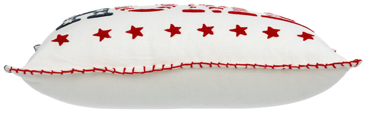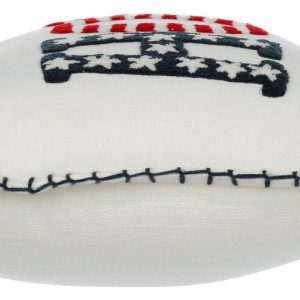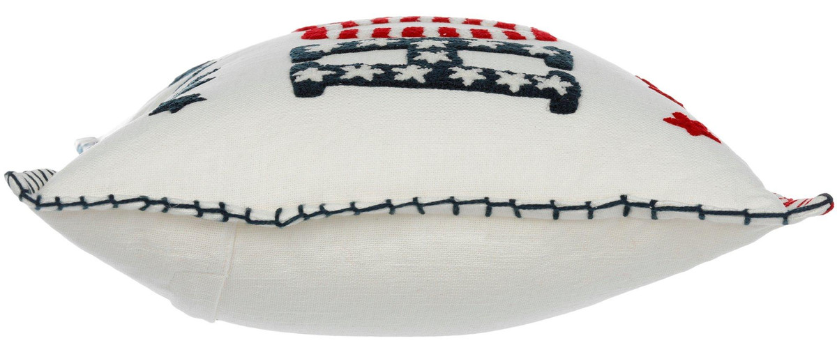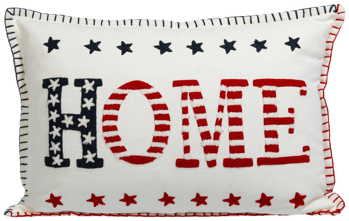 Celebrate the spirit of America with this charming patriotic décor pillow. Featuring the word home and a line of stars embroidered in red, white and blue yarn, it brings a cozy Americana touch to any space. Perfect for summer gatherings or year-round pride, this pillow adds warmth and character to your home with every stitch. Measures approximately 20 in x 14 in.