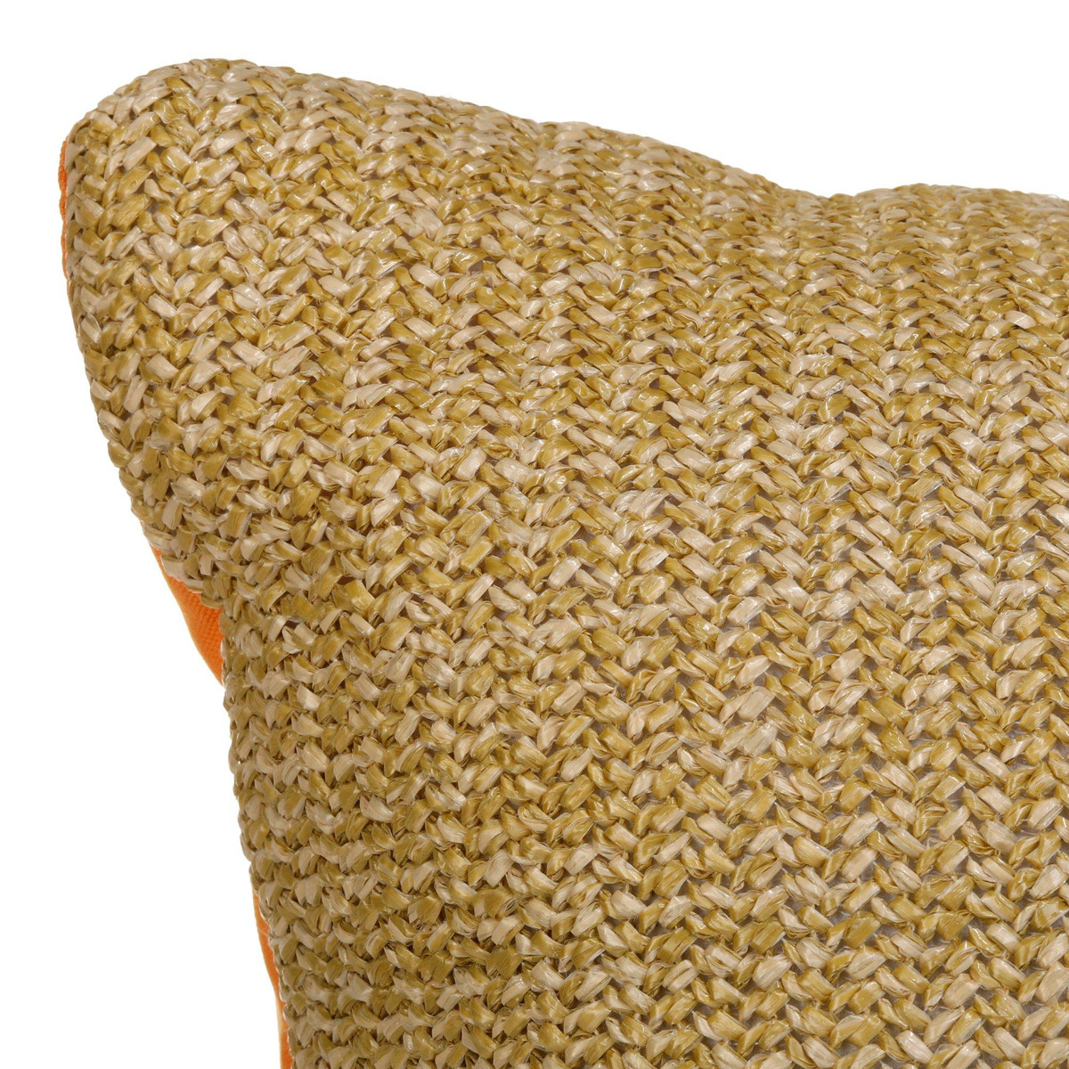 Give your bedroom or living room a stylish update with this 18 in Colorblock Decorative Pillow. A jute weave embellished section adorns the front of the pillow to give it a unique look and added texture. It makes a lovely accent piece for your bed, sofa or chair. Measures approximately 18 in x 18 in.