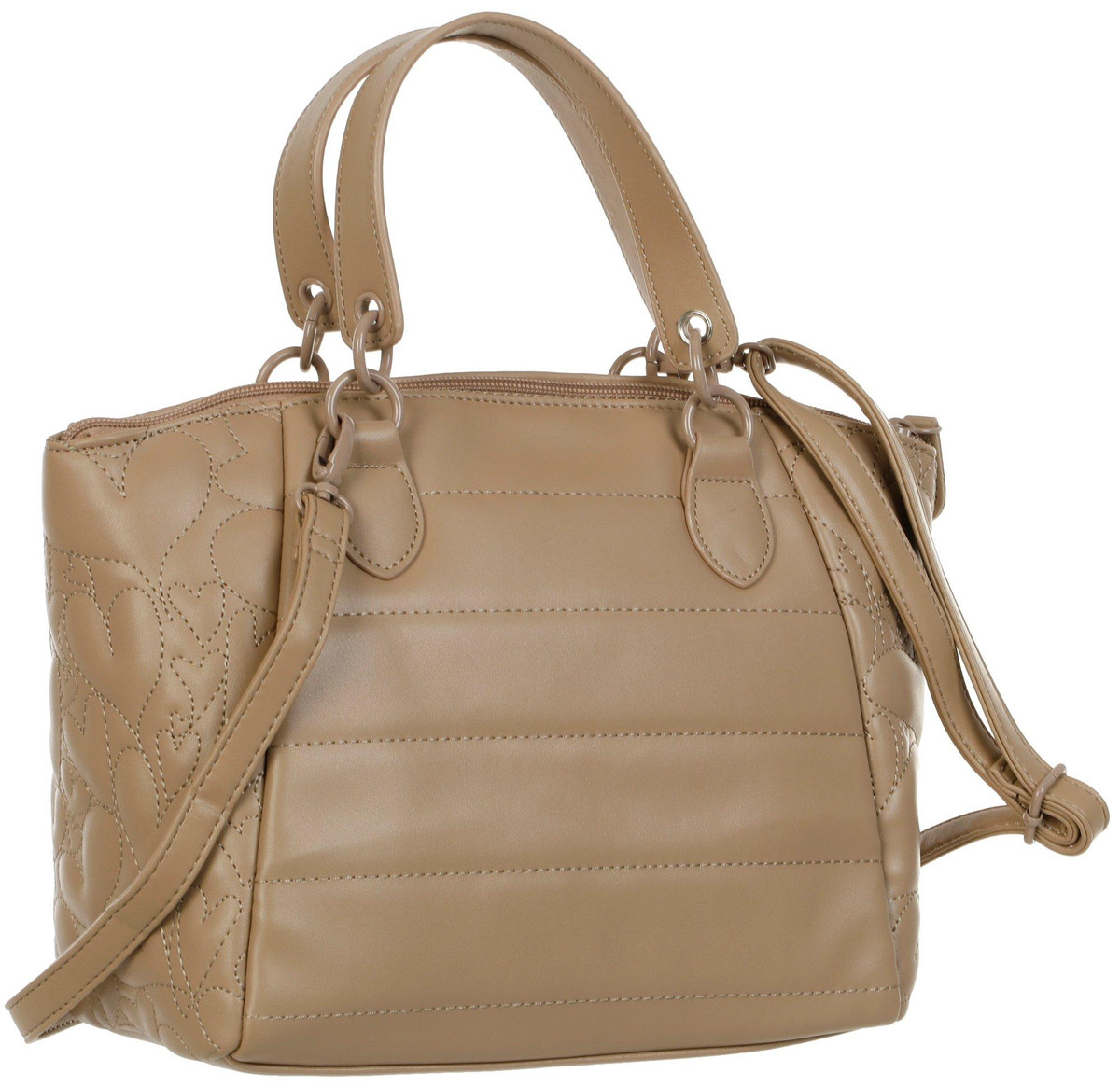 Say hello to the Kinley Satchel! This chic handbag crafted from a faux leather fabrication features a stylish solid color for endless styling opportunities, an embroidered heart pattern on the sides, top handles, and an adjustable crossbody strap for versatile wear. The top zip compartment features two slip pockets, one zip pocket, and a spacious interior providing ample space for your essentials. Measures 10 in x 5 in x 10 in.