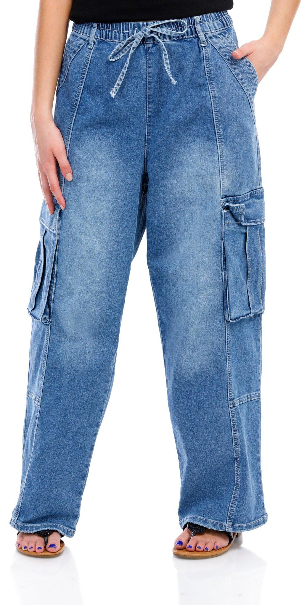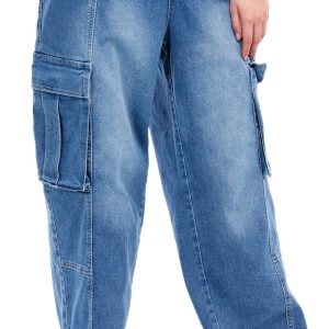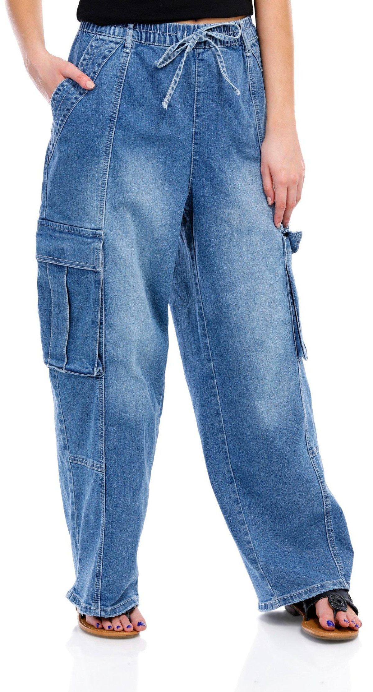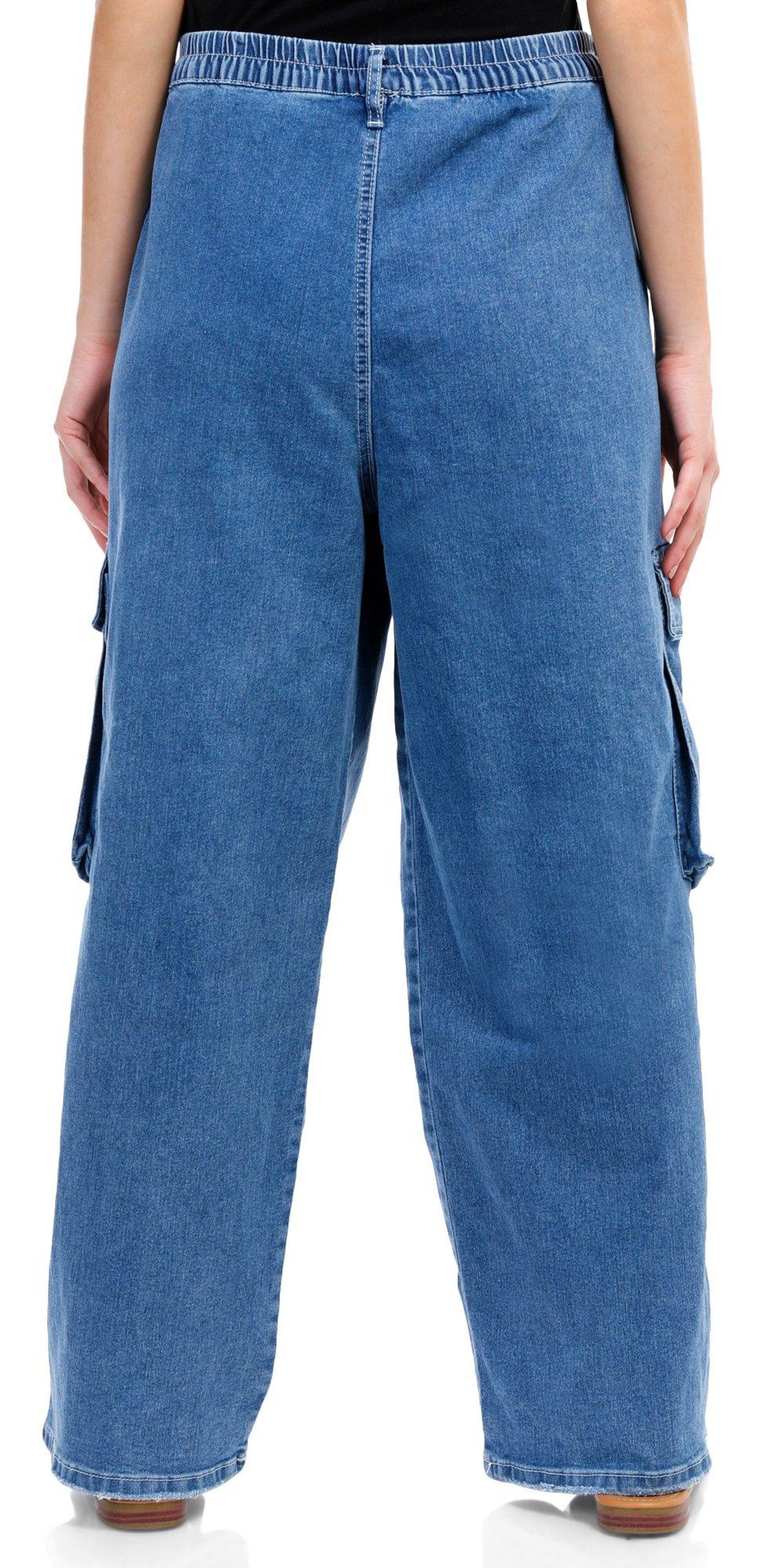 Madden Girl Juniors Denim High Hem Cargo Flare Jeans