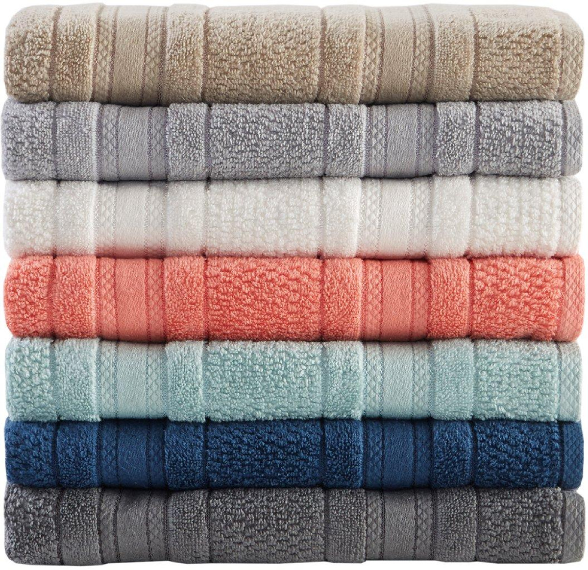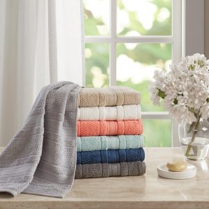 The Madison Park Essentials Adrien Bath Towels features one-of-a-kind softness and absorbency from a zero twist design. Set includes: 2 bath towels (52” L x 27” W), 2 hand towels (26” L x 16” W), and 2 washcloth towels (12” L x 12” W).