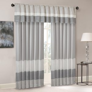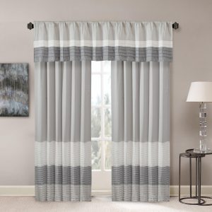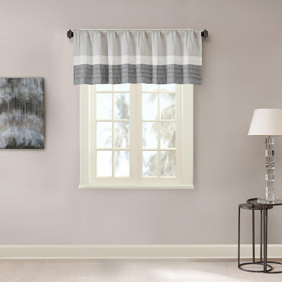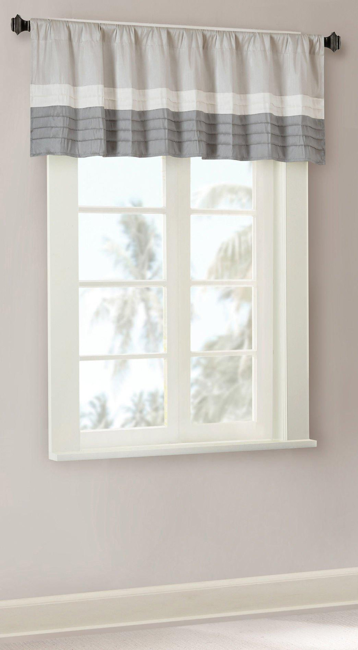 Add a casual update to your home with the Madison Park window valance. This window valance features color block stripes in hues of grey and ivory, combined with pintuck detailing for beautiful texture and dimension. Fits up to a 1.25 diameter rod. Measures 50”W.