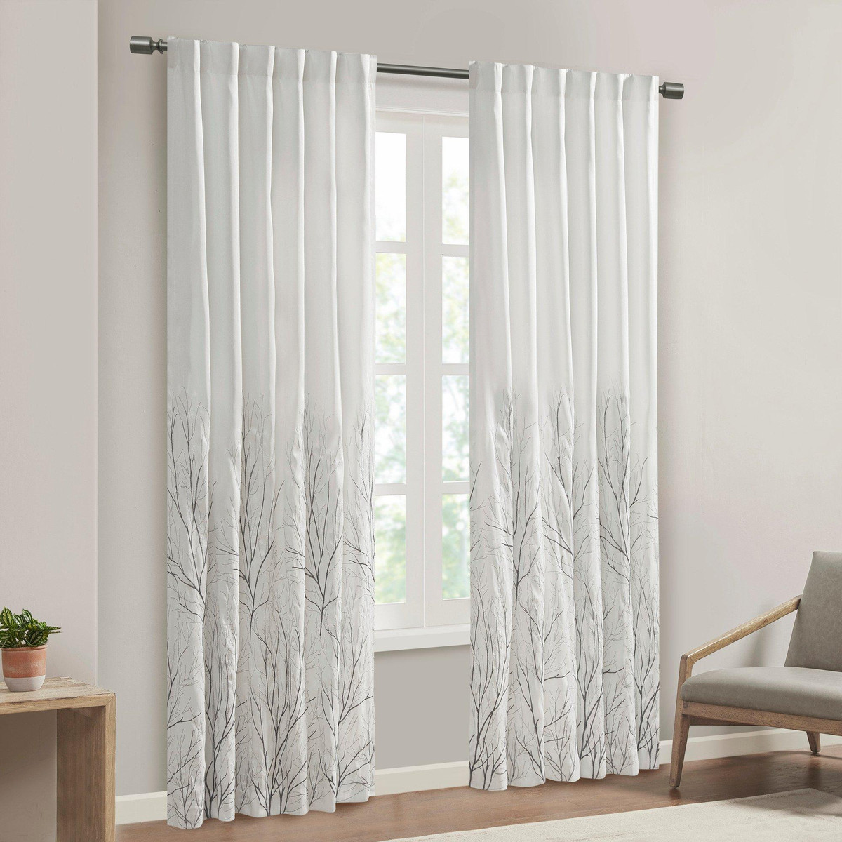 The Madison Park Andora Window Panel Combines Style And Nature In The Best Way. A Striking Tree Branch Design Is Embroidered On Beautiful Faux Silk, Creating Alluring Contrast And Dimension. Hang Using The Rod Pocket Top For A More Casual Style Or By The Back Tabs For A Crisp, Tailored Look. Fits Up To A 1.25 Diameter Rod. Due To The Fabrication And All Over Embroidery Design, Some Texture And Crinkle Maybe Left After Steaming (Steam Only, Do Not Iron).
