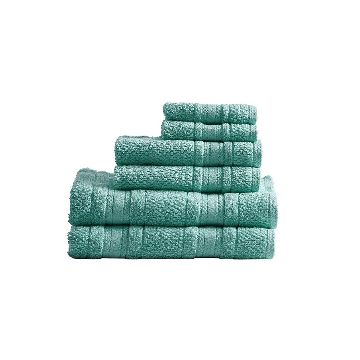Refresh your bathroom with the Madison Park Spa Waffle Cotton Towel Set. Crafted from 100% cotton, this 6-piece set features a textured waffle jacquard design with a velour dobby cuff for a modern touch. The 600gsm weight offers softness, lightweight comfort, and quick-drying performance. Perfect for daily use and easy care, this solid color towel set adds spa-like luxury to your space. Machine washable for easy care.