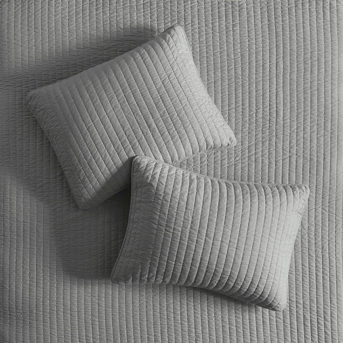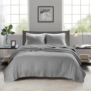 The Madison Park Keaton Reversible Quilt Set adds casual charm with its solid navy design and pick stitch channel quilting. Crafted with cotton-rich fill, it offers cozy comfort and a clean farmhouse look. Matching shams complete the set, while an anti-microbial treatment keeps bedding fresh and hygienic. Machine washable for easy care.