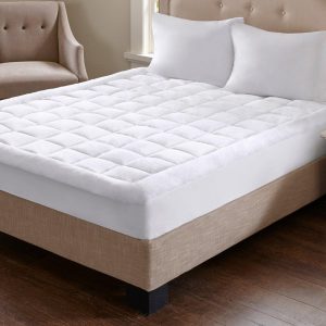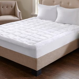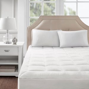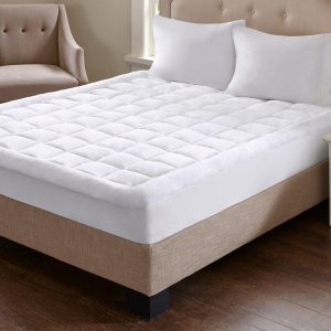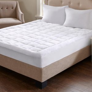This Madison Park Cloud Soft Overfilled Plush Hypoallergenic Down Alternative Waterproof Mattress Pad will make you feel like your sleeping on clouds. It’s designed to be waterproof for lasting comfort and durability and overfilled for added loftiness. Skirt is 15” and is polyester/spandex knit fabric with box quilting.