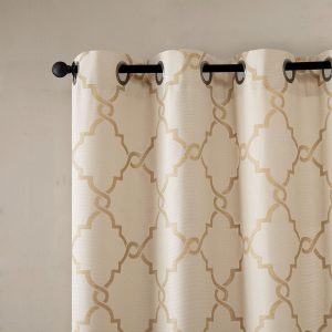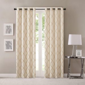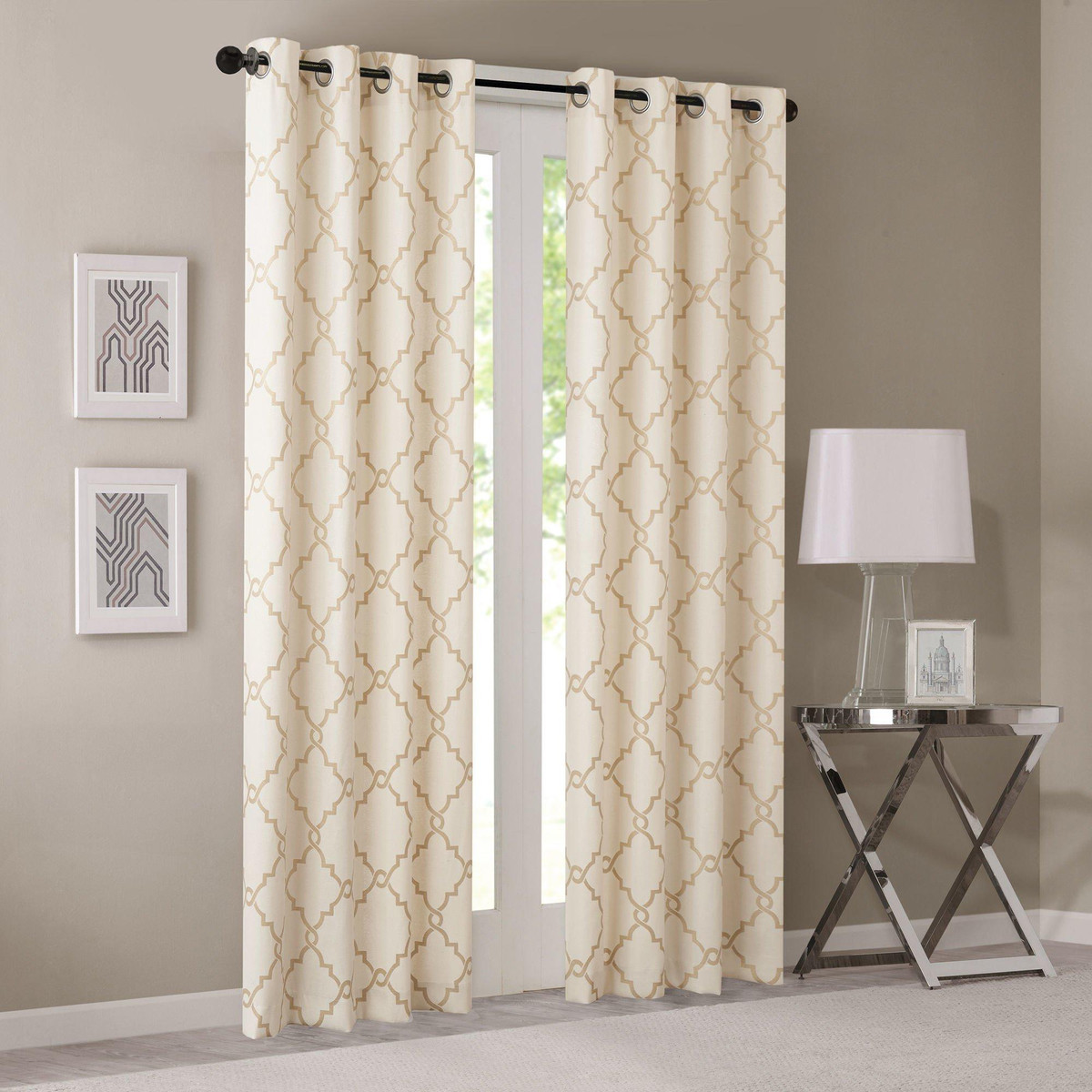 Add a casual update to your home with the Madison Park window curtain. This window panel features a scroll geometric fretwork print design window curtain panel in grommet top, silver grommet top finish, and is an opaque curtain that offers privacy. Curtain features print detailing on cotton blend basketweave fabric. Fits up to a 1.25 diameter rod. Measures 50”W. Panels sold individually.