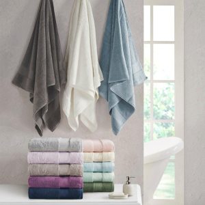 Indulge in spa-like luxury with the Madison Park Signature 6-Piece Turkish Towel Set. Made in Turkey from 100% low-twist cotton, these 600 GSM towels offer plush softness, high absorbency, and lasting durability. OEKO-TEX certified and finished with classic dobby trim, they bring elegance and comfort to your daily routine. Machine wash for easy care. 100% Turkish cotton. Set includes 2 bath towels (30 x58), 2 hand towels (16×30), 2 wash towels (13×13).