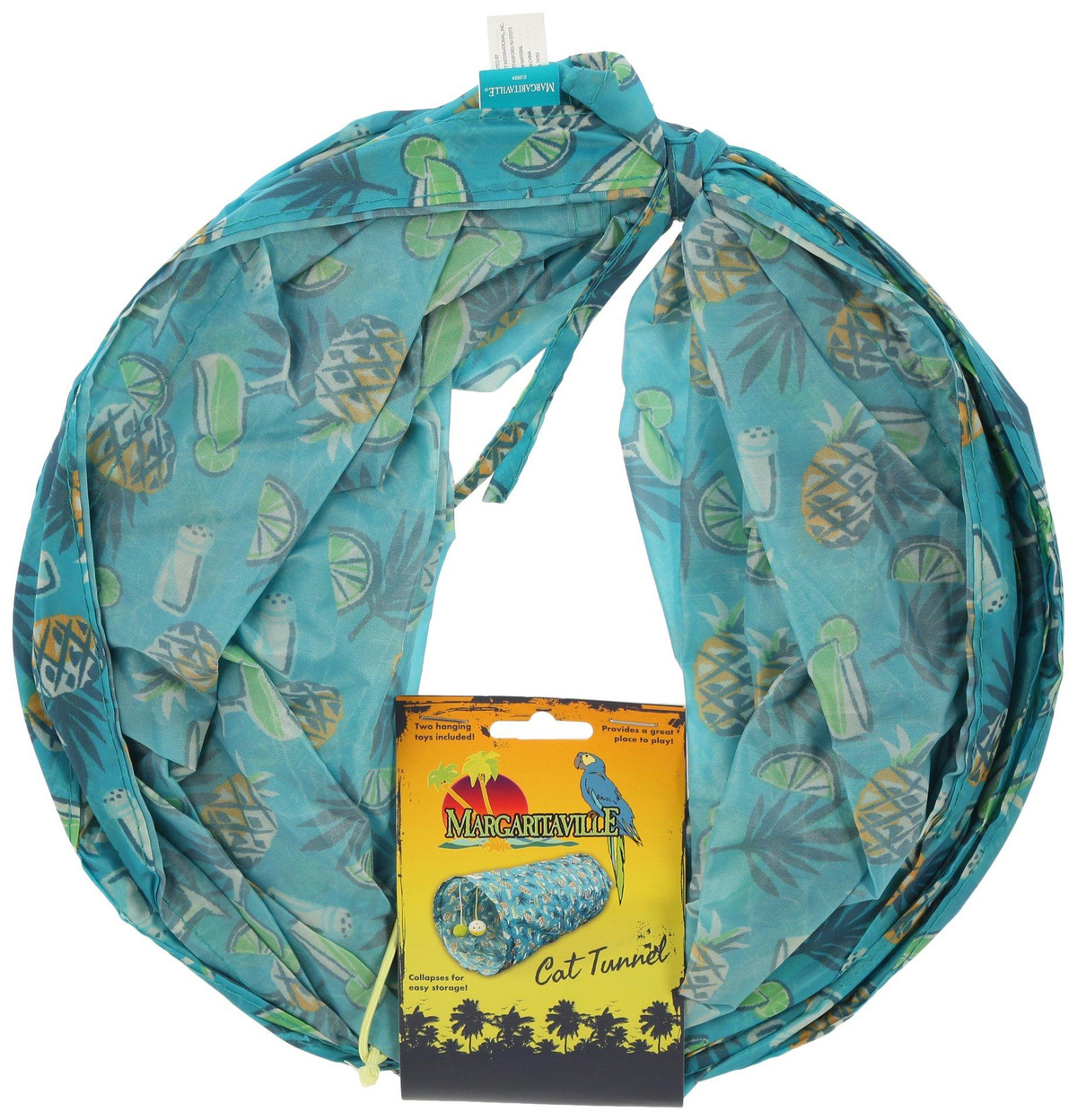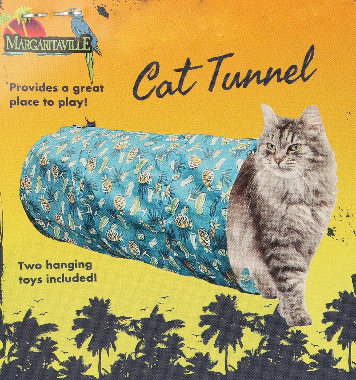 Get your favorite cat its new favorite hideout with this Cat Tunnel! It features a convenient collapsible design for easy storage, two hanging toys, and plenty of space to play. Measures approximately 10 in x 30 in.