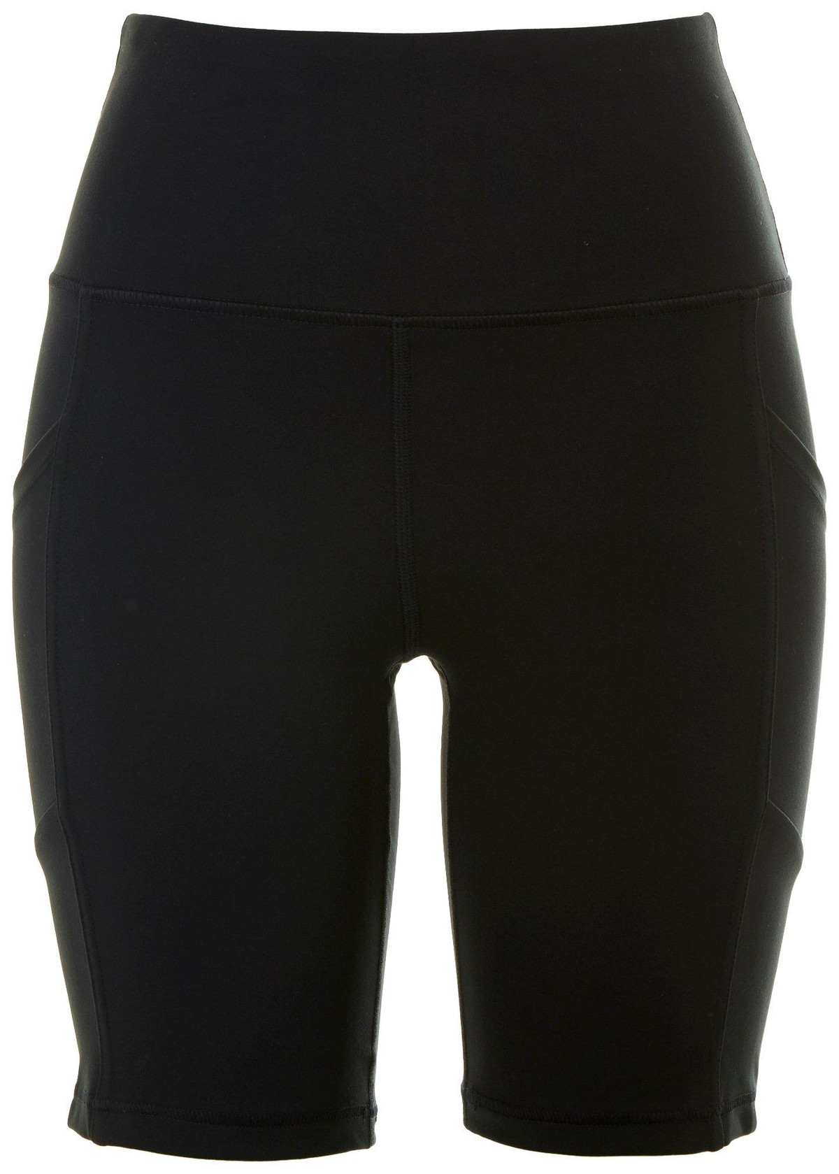 These Marika bike shorts feature a solid color design on lightweight knit fabric, a high elastic waistband with 4 in. tummy control panel, two deep side pockets for storing your cell phone and valuables, and pull-on styling. The inseam is approximately 9 in. Fabrication 81% polyester, 19% spandex.