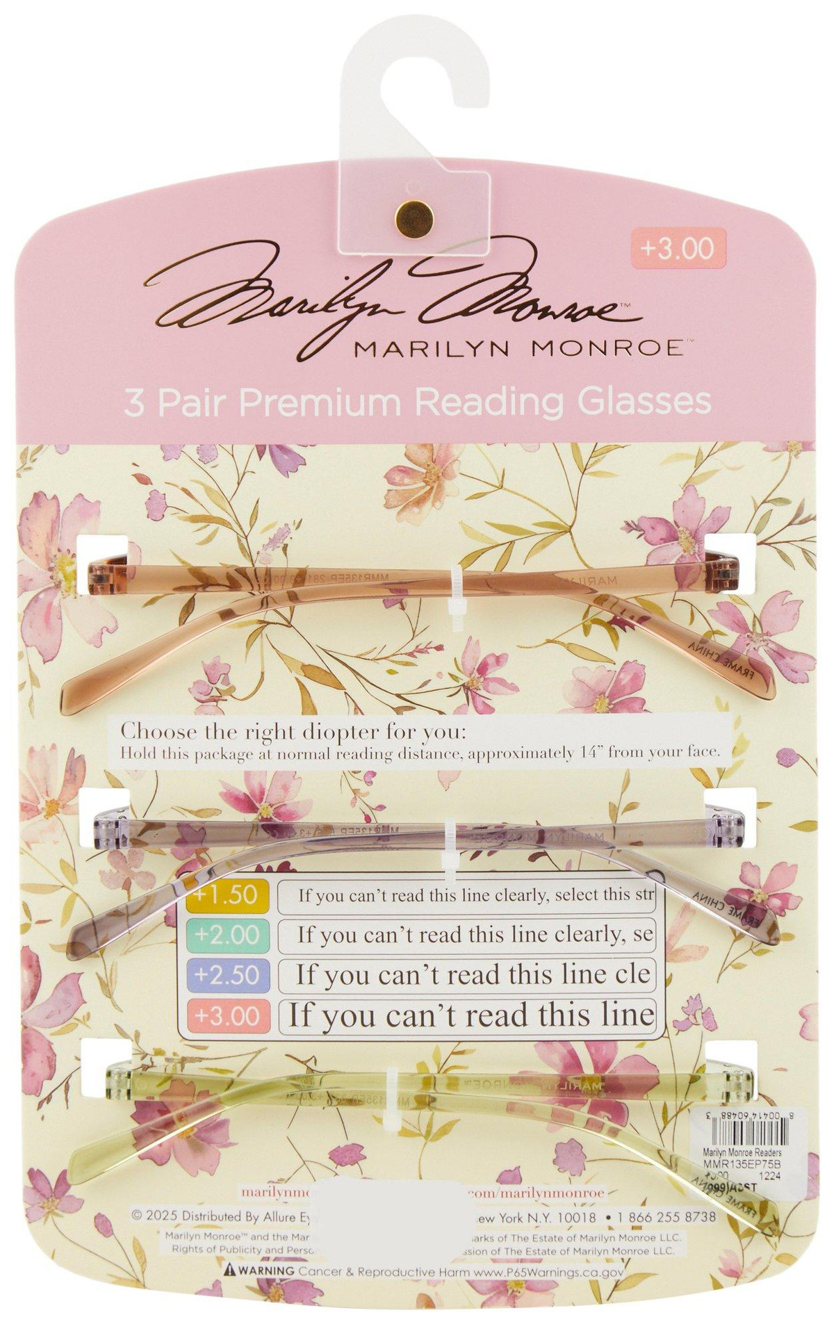 Bring timeless style to your routine with the Marilyn Monroe Reading Glasses Set, featuring two chic solid colored frames and one shell-inspired pattern. Perfect for reading, crafting or browsing recipes, each pair offers a fabulous way to bring focus back to your day. Designed for everyday ease, this versatile set keeps you covered at home, work or on the go.