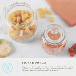 Organize and store ingredients to keep food fresh and ready. Whether in the pantry or on the countertop, these classic canisters transform clutter into a convenient display of your favorite kitchen essentials. Canisters include 2.1 QT. and 1 QT.