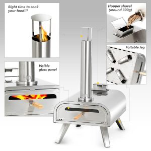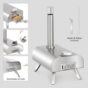Make pizza anywhere with the Master Cook Portable 16 in. Stainless Steel Pellet Pizza Oven! It features a high temperature capacity of 1100 degrees, heats up in 20-30 minutes, and cooks up to a 16 in. pizza in just 90 seconds. The oven includes a glass panel to monitor cooking, a 10 oz. capacity rear hopper for easy-to-control airflow for the perfect temperature, a handle and foldable legs for easy transport, and durable stainless-steel construction. Measures 18.1 in. x 32.3 in. x 36.4 in. H.
