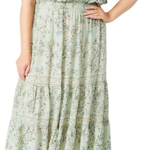 Max Studio Plus Short Sleeve Floral Tiered Midi Dress