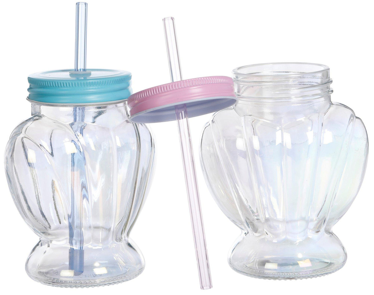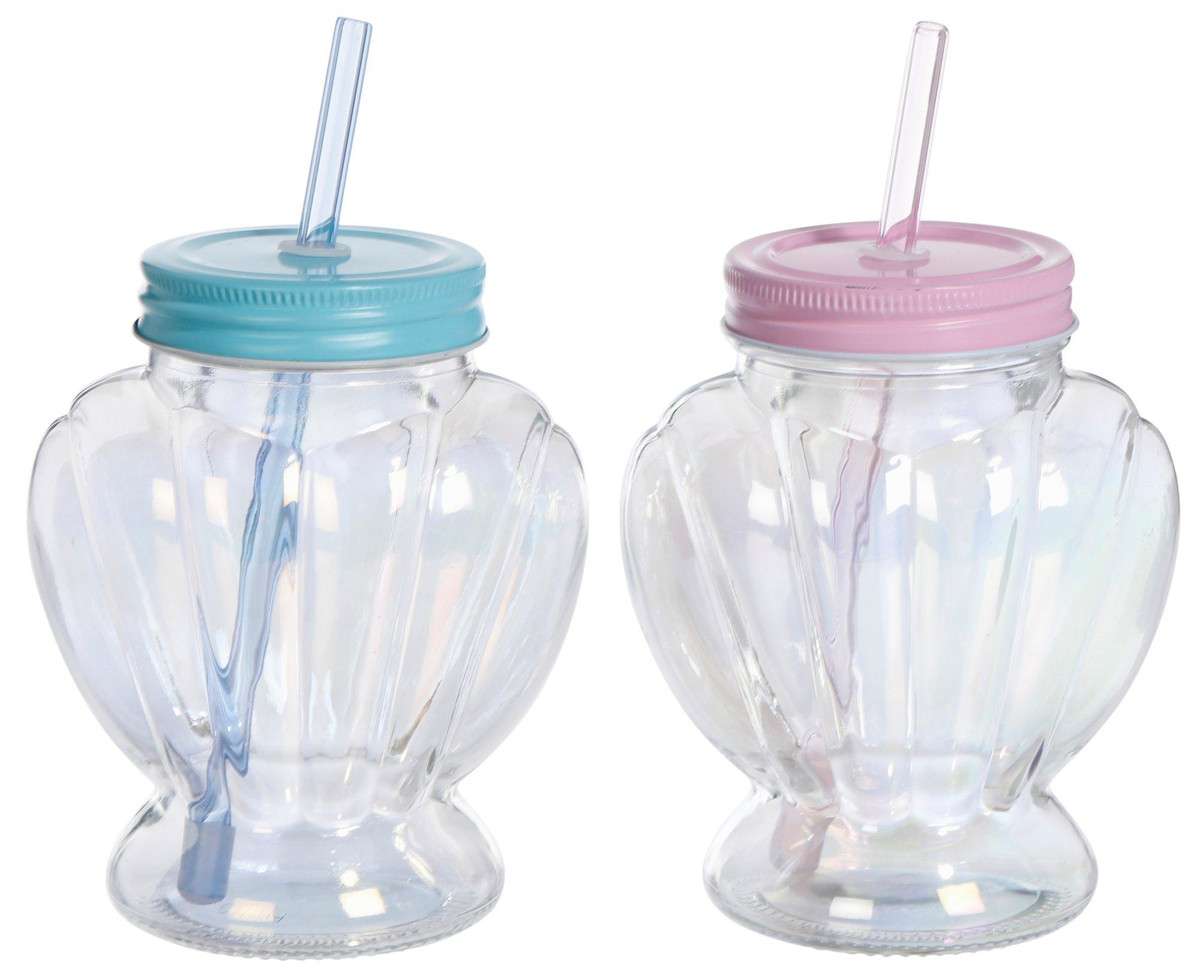 Sip in style with these 2 Pk of 18 Oz Clear Glass Shell Tumblers! Featuring a cute shell design, a colorful iridescent hue and a matching straw. Designed with scratch resistant glass and is lead and BPA-free. Perfect for adding charm to your daily hydration. Made with glass for pure tasting drinks! Fabrication is 100% glass. Each holds 18 fl oz. Measures approximately (without straw) 5.5 in x 5 in x 3 in.