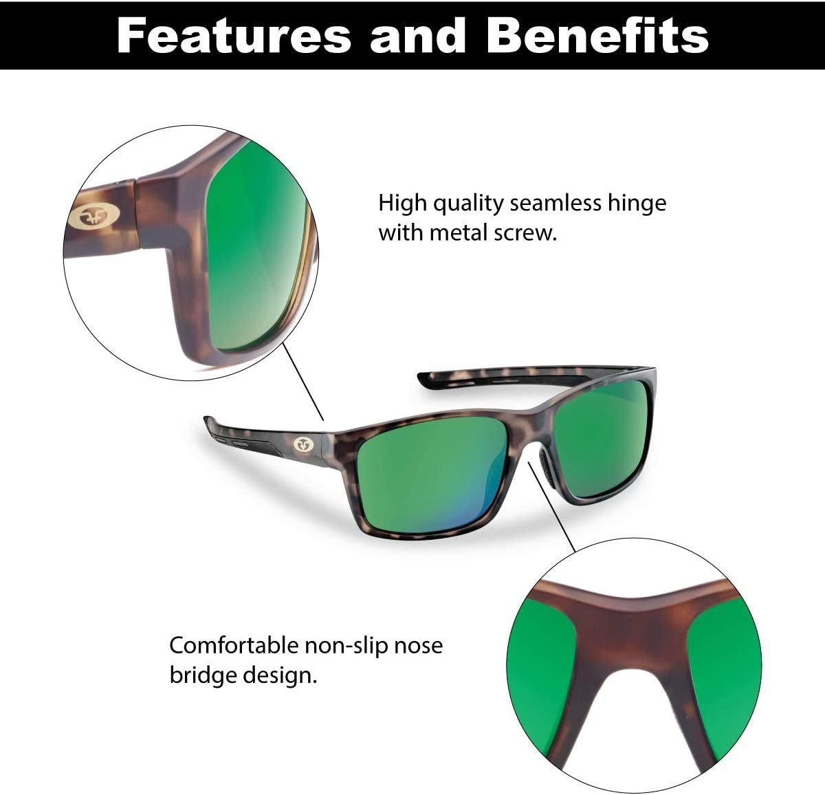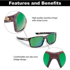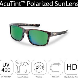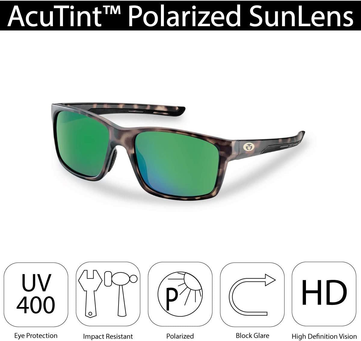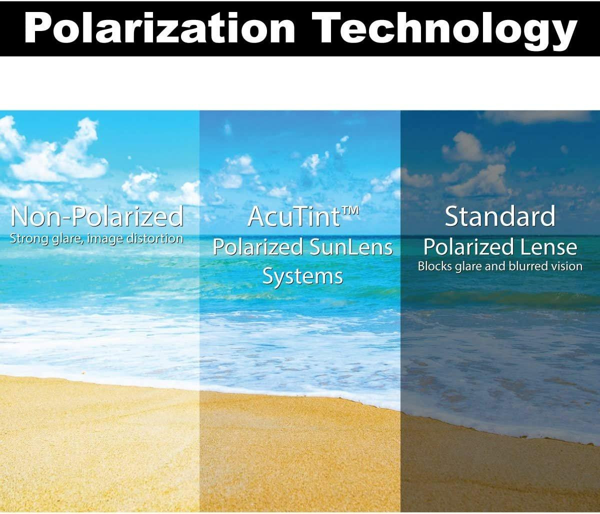 Built for fishing these shades feature a medium fit in a durable light weight frame with built in nose pads, non-slip temple padding that insures comfort and fit. These polarized lenses sharpen optics, reduce eye fatigue, and penetrate waters surface to spot fish and structure. Polarized Triacetate Lenses are Impact and Scratch Resistant, Lightweight and Durable. AcuTint Lens Coloring System Adds Color Contrast Without Distorting Natural Colors. 100% Protection From Harmful UVA and UVB Rays.