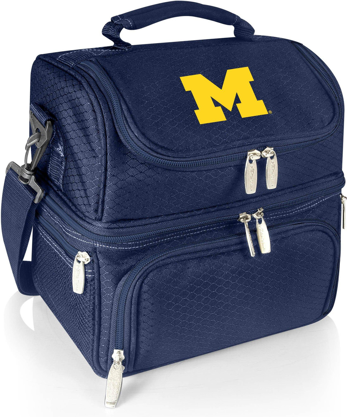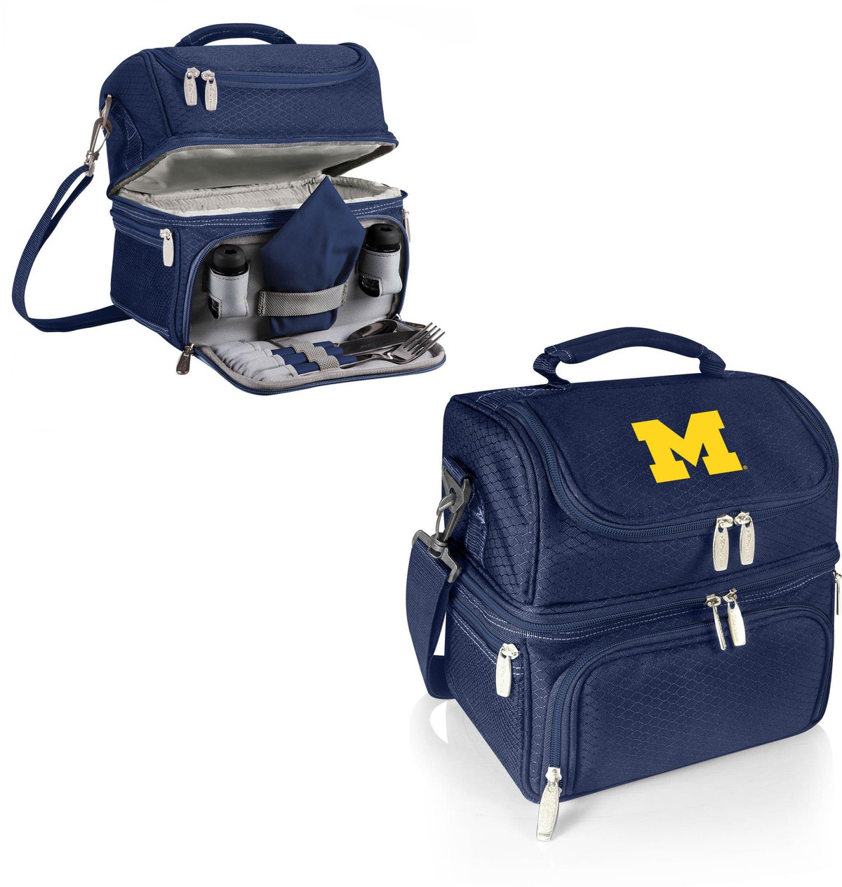 The Pranzo insulated lunch box is made of polyester and features adjustable shoulder strap, soft grip handle, side mesh pockets, and a hidden flatware section with 1 stainless steel fork, knife, and spoon, salt & pepper shaker and 1 cotton napkin. Measures 12”L x 8”W x 11”H.