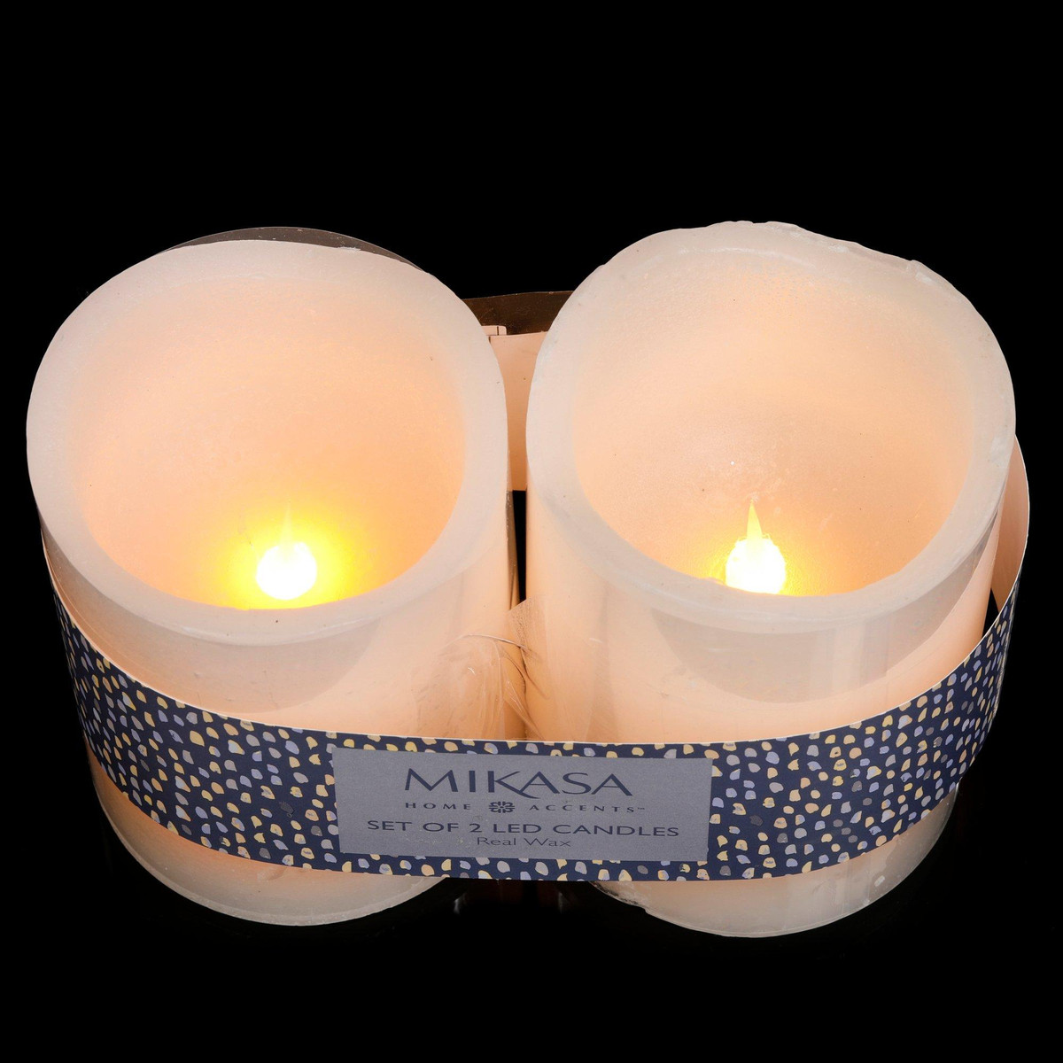 Add a warm, elegant glow to any space with this set of flameless LED candles. Made from real wax with a soft flickering light, they offer a safe, mess-free alternative to traditional candles. Each pillar operates on 2 AA batteries (not included) and Measures: 3×4 in. Pefect for effortless ambiance anywhere in your home.