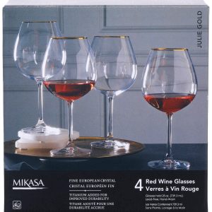 Mikasa Julie Gold Set of 4 Red Wine Glasses 25 oz