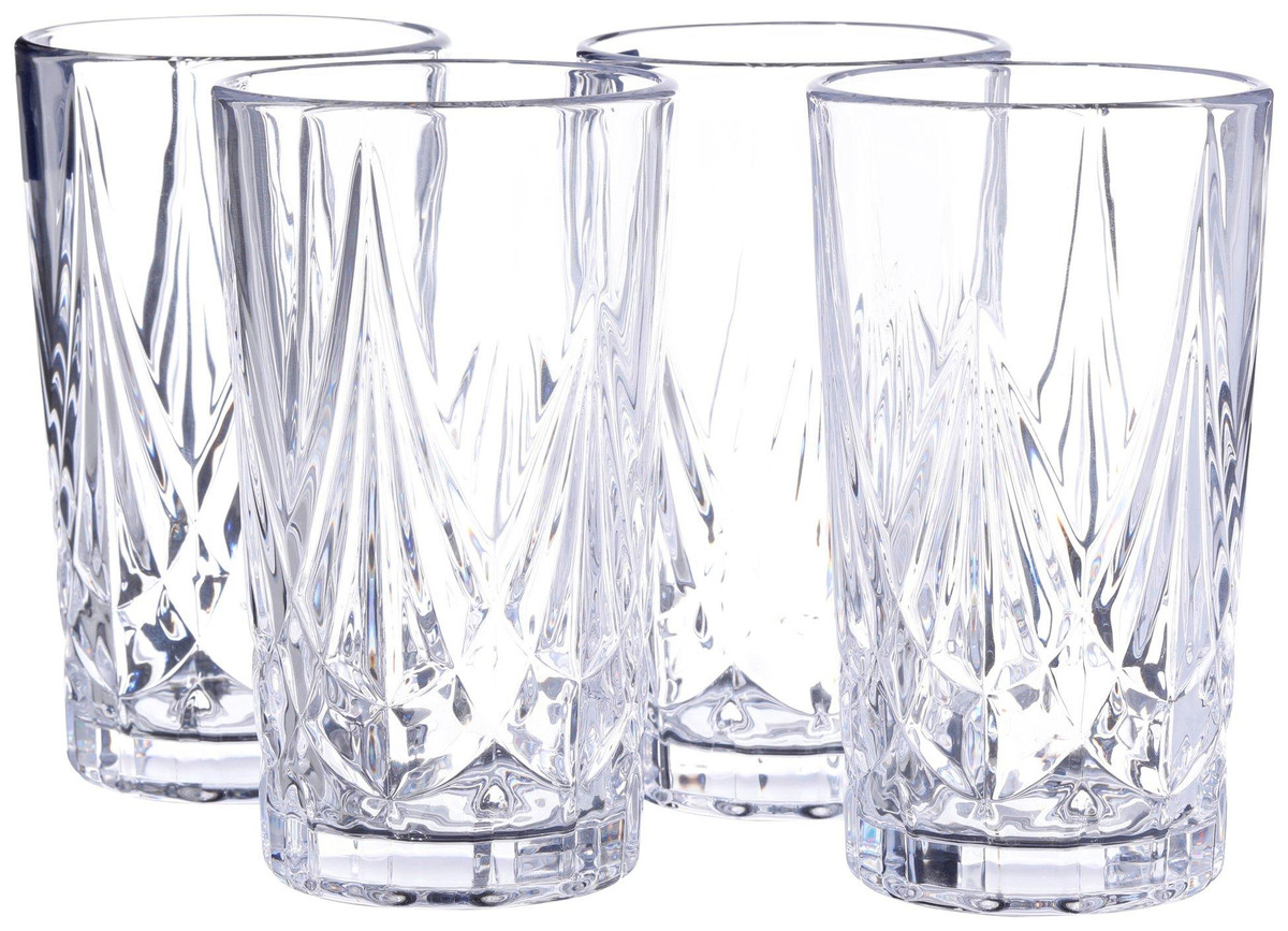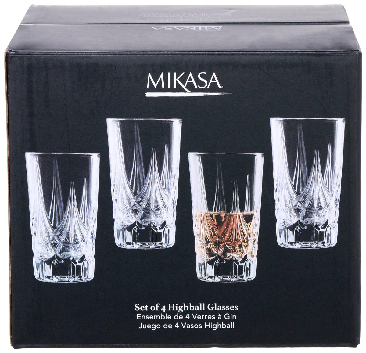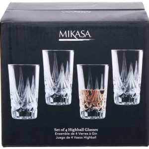 Serve with sophistication using the Mikasa Contessa highball glasses. This set of four is crafted from premium crystal and features intricate etched patterns that add a classic touch to your drinkware collection. Each glass holds 14.5 oz and offers a comfortable round shape, making it ideal for cocktails, sparkling water, or iced beverages. Durable and dishwasher safe, they bring timeless elegance to any gathering