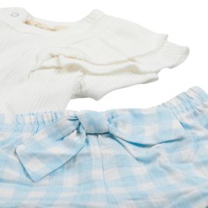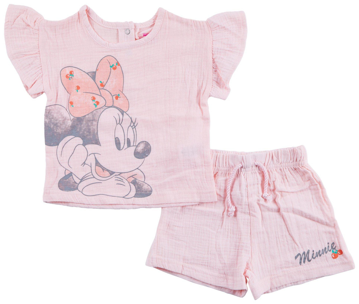 Introducing the Baby Girls 2 Pc Minnie Gauze Shorts Set, made from 100% cotton for a soft and breathable feel. This adorable set features a short sleeve top with a charming Minnie Mouse graphic design and matching shorts. Perfect for everyday wear or special occasions, this outfit combines comfort and style, making it a delightful addition to your little one’s wardrobe.