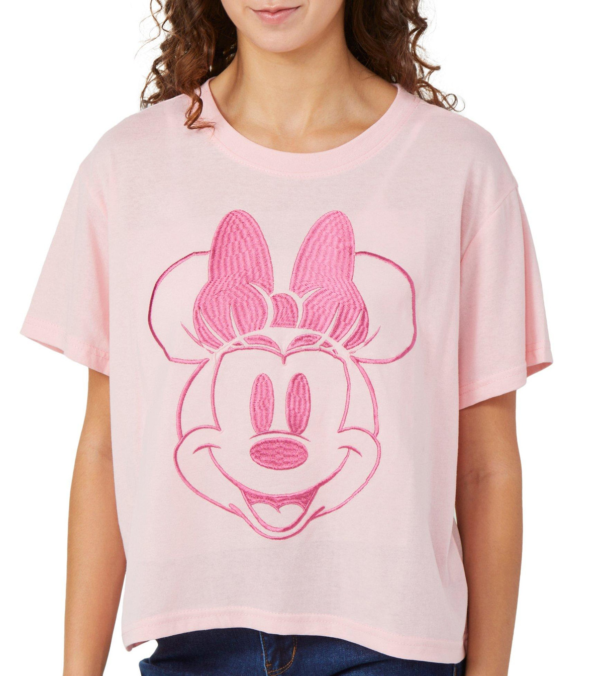 Keep it cute in our Juniors Embroidered Minnie Head Tee. Designed with a classic crew neckline and short sleeves, this tee features an embroidered Minnie Mouse head on the front. Fabrication 60% cotton, 40% polyester