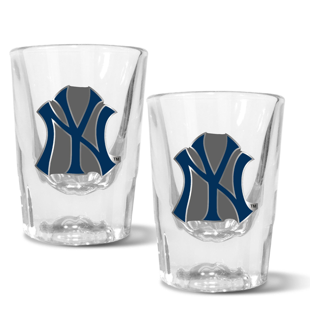 Show your team spirit tailgating with these MLB New York Yankees Set of 2 2 Oz. Prism Shot Glasses. The set includes two 2-oz shot glasses. In addition to the high-quality metal emblem, the Prism shot glass features an elegant cut at the base. Measures 2.25” x 2.25” x 3.”