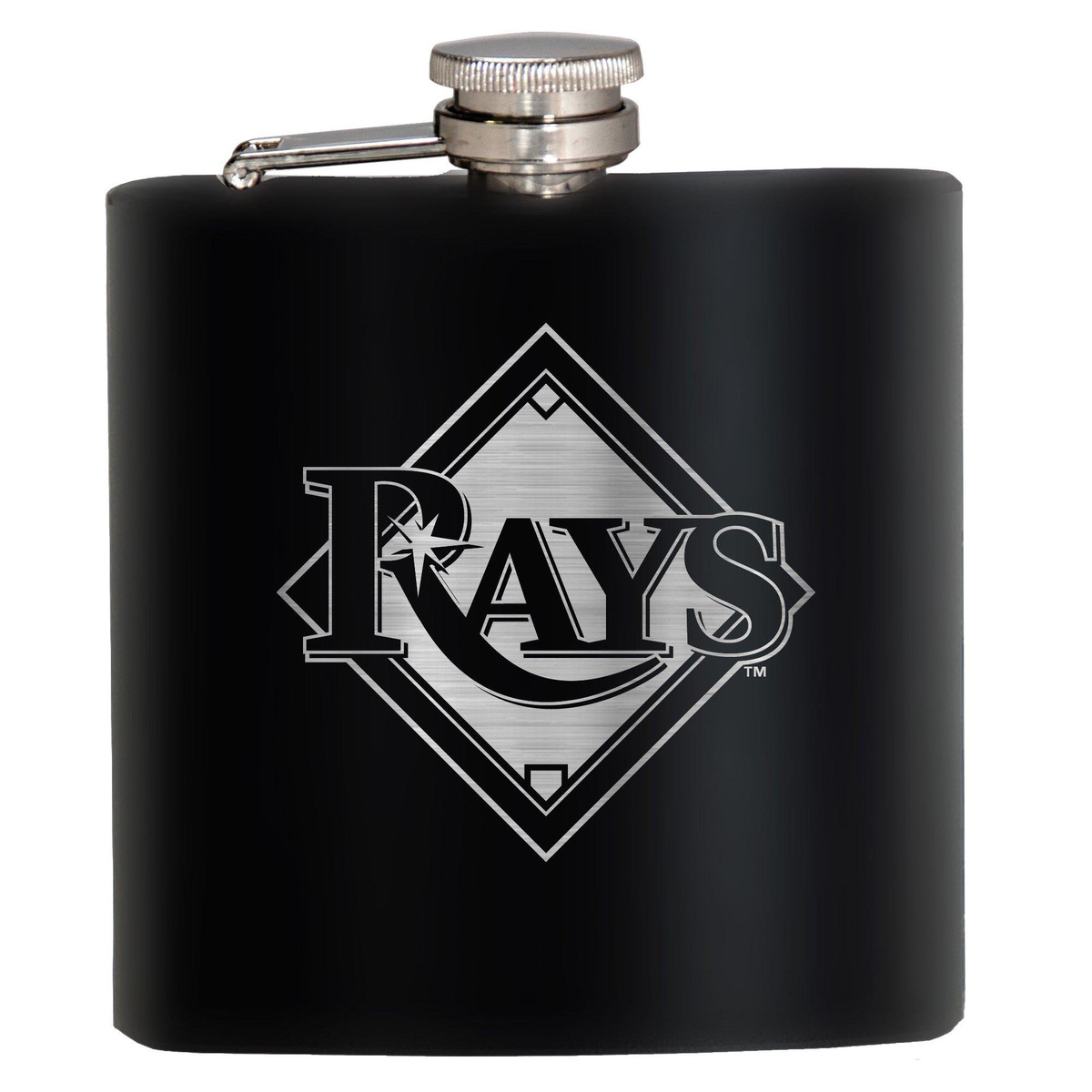 Show your team spirit! This Tampa Bay Rays Stealth Hip Flask, made of kitchen-grade 18/8 stainless steel, holds 6 fluid ounces. It is powder-coated in a black matte finish and features laser-etched team graphics. Measures 3.75 in. x 1 in. x 4.25 in.