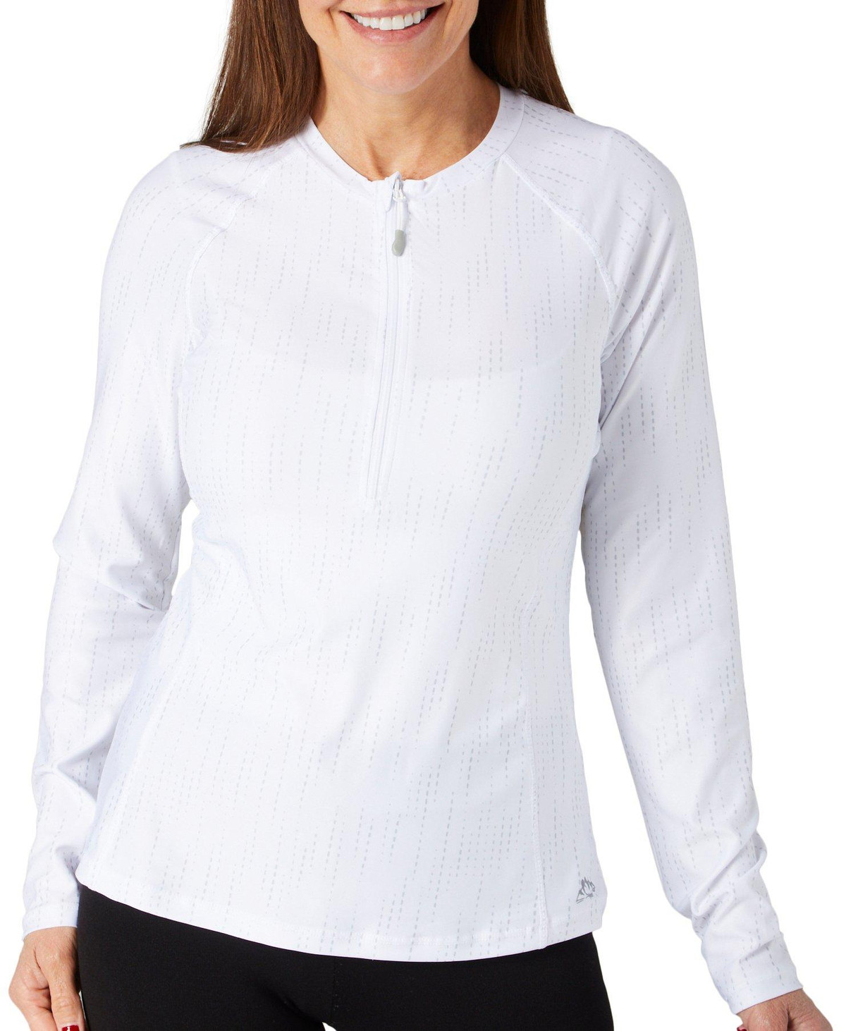 The Women’s Active Printed 1/4 Zip Top combines style and performance with a comfortable, stretchy fit. Made from 92% polyester and 8% spandex, it offers breathability and flexibility for active days. The long sleeves provide coverage, while the 1/4 zip allows for adjustable ventilation. The vibrant print adds a stylish touch, making this top perfect for workouts, casual wear, or outdoor activities.