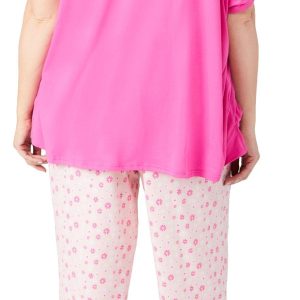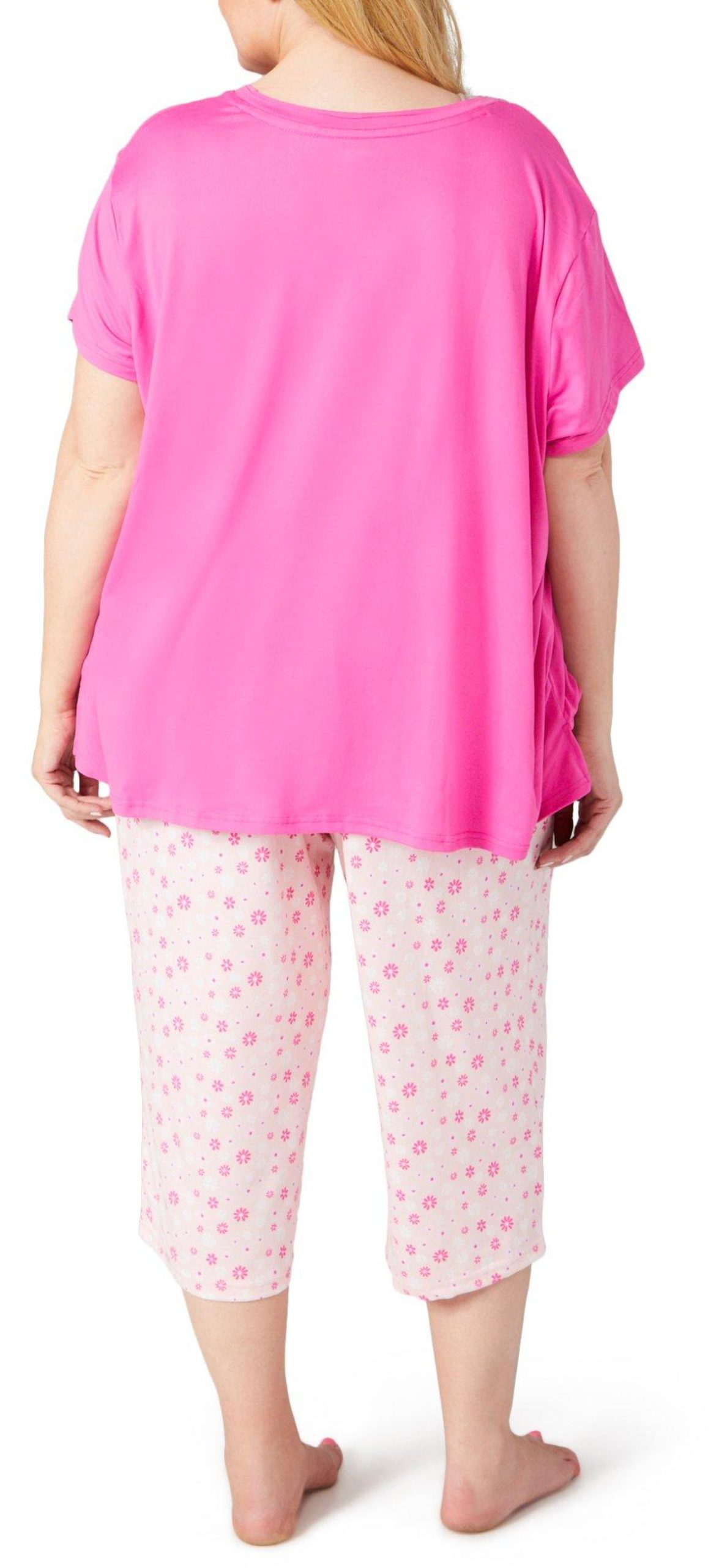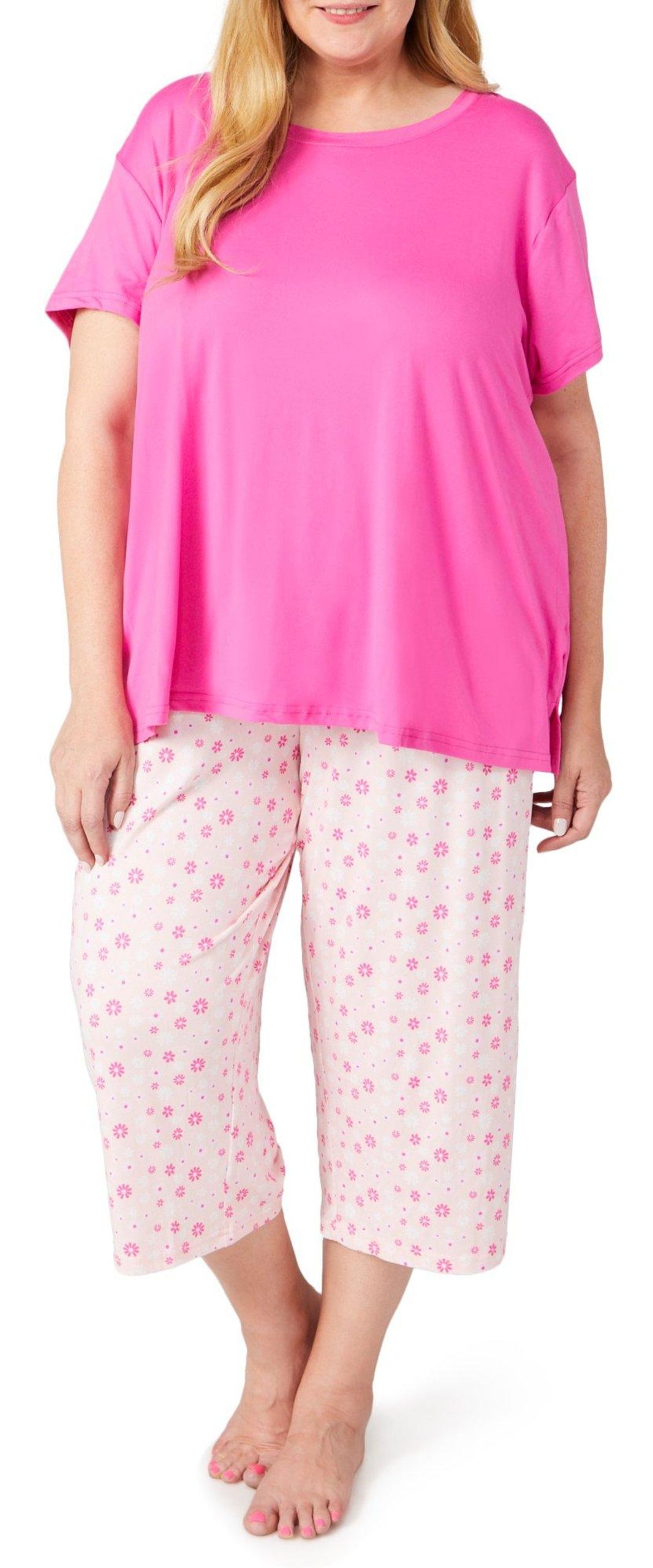 Introducing the Plus 2 Pc Capri Sleepwear Set, crafted from a comfortable blend of polyester and spandex. This set features a solid short sleeve top paired with floral print capri pants, offering both style and ease. Perfect for lounging or sleeping, this set combines beauty and comfort, making it a delightful addition to your sleepwear collection.