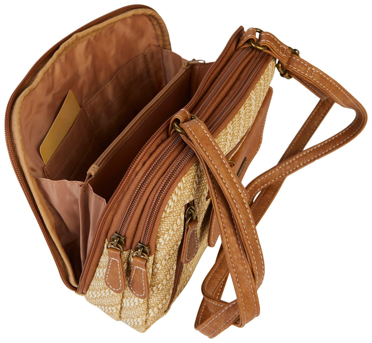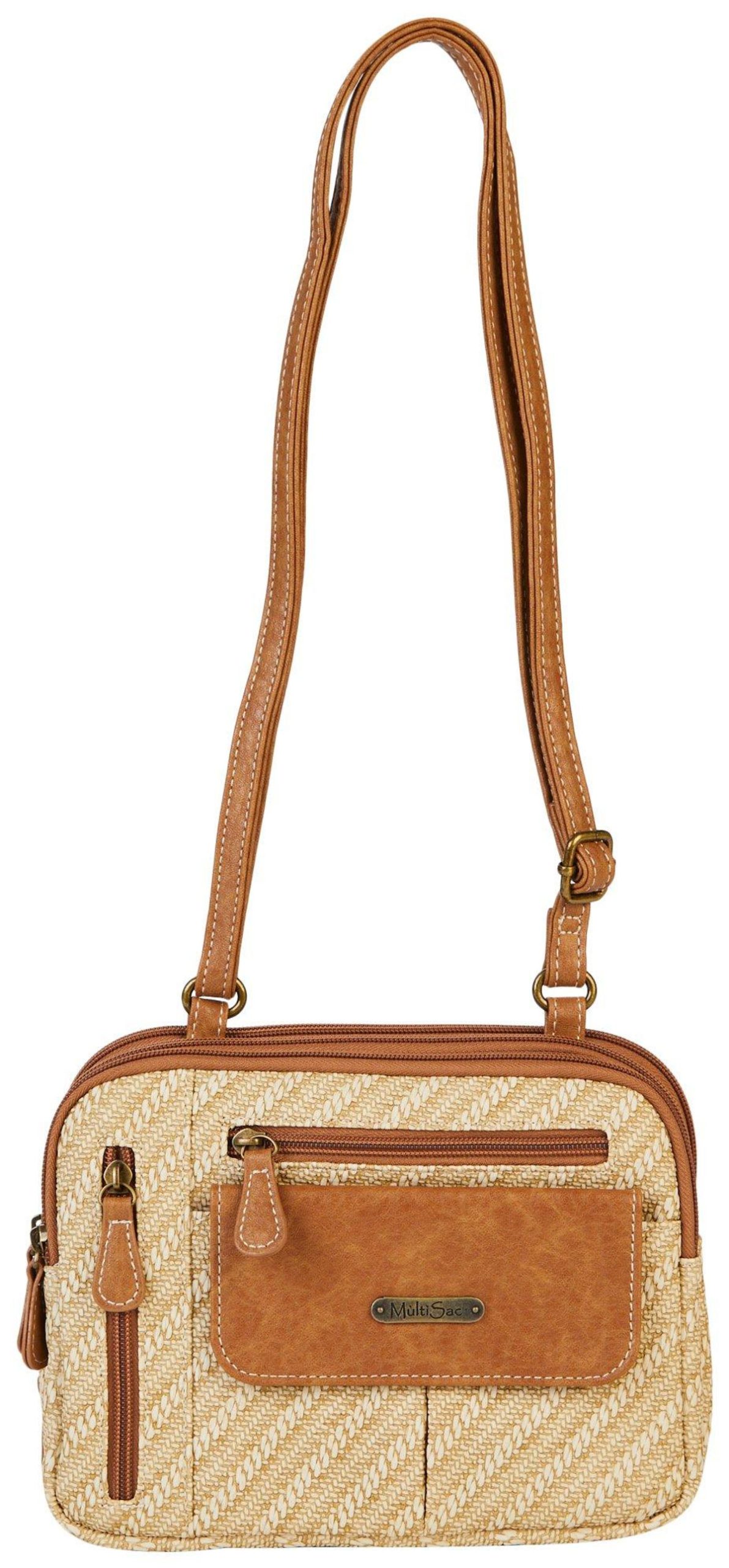 The Zippy Denim Crossbody by MultiSac features a smooth design, an adjustable strap, front flap pocket, exterior zipper pockets, three zip compartments with credit card slots, interior zipper pocket & interior slip pockets. Crossbody handbag measures 9.5 in. x 3 in. x 7 in. with a 30 in. drop.
