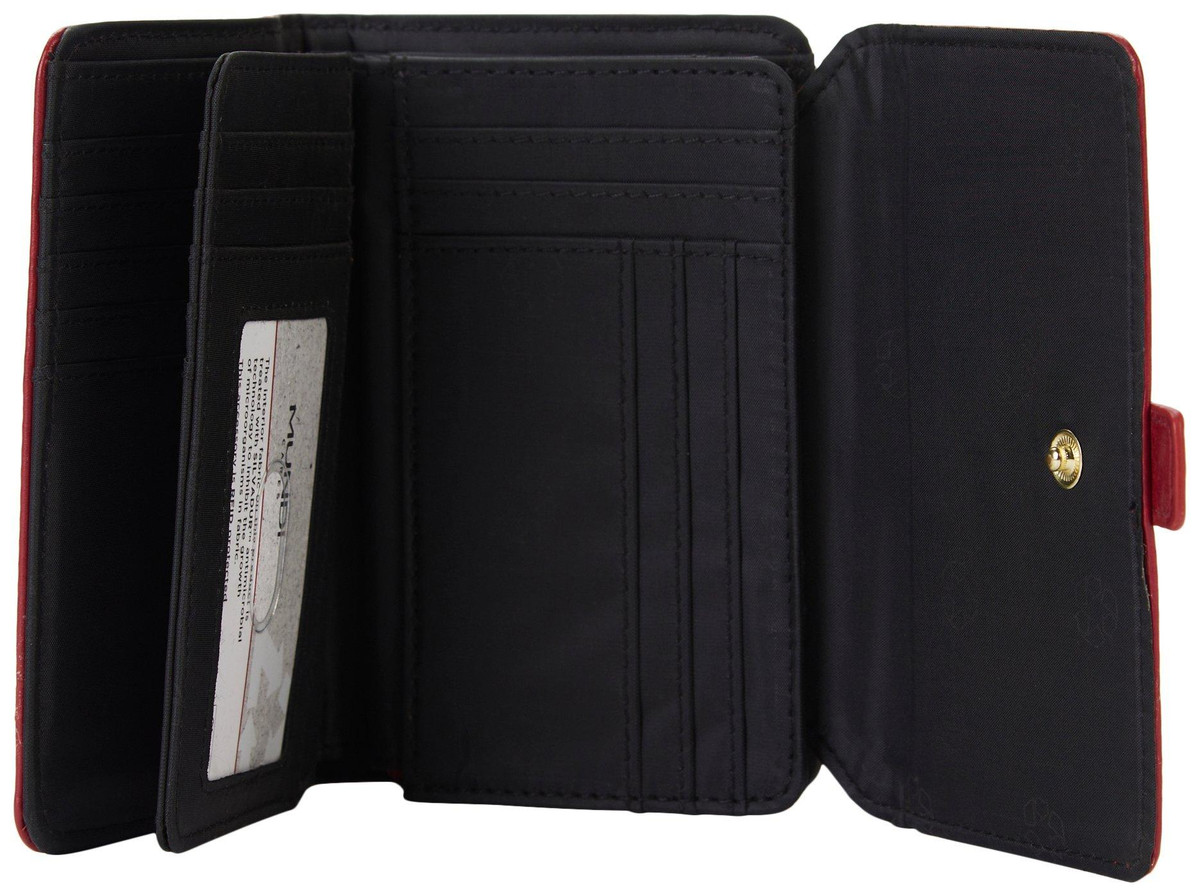 The Mundi Amsterdam Indexer Wallet offers style and function with RFID-blocking tech, faux leather, and gold-tone hardware. It features 14 card slots, snap closure, 1 ID window, 1 back zip pocket, 1 inside slip pocket, and 1 bill pocket. Compact yet roomy, it keeps essentials secure and organized. Measures 5.5 L x 4 H x 1.5 W.