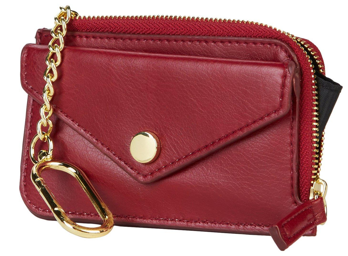 A chic texture brings visual intrigue to this sized-down clutch fashioned with a carabiner clasp that allows you to attach it to your belt loops or other larger items. 3 H x 5 W x 1/2 D Top zip closure. Synthetic. Imported.