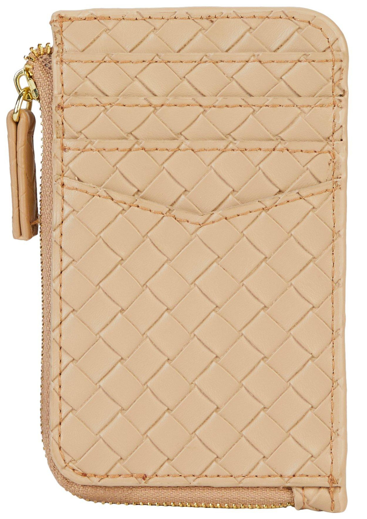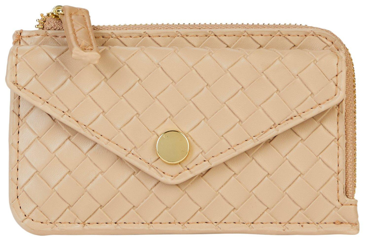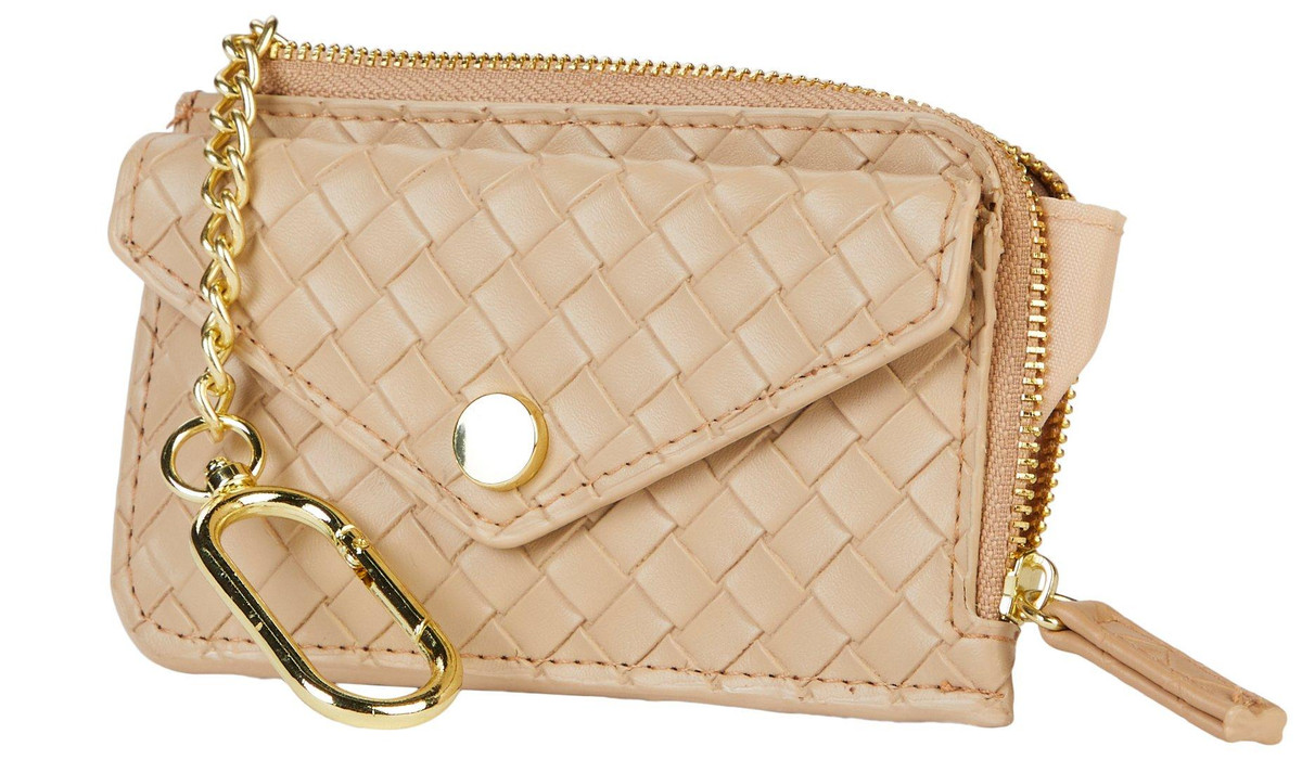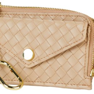 A chic texture brings visual intrigue to this sized-down clutch fashioned with a carabiner clasp that allows you to attach it to your belt loops or other larger items. 3 H x 5 W x 1/2 D Top zip closure. Synthetic. Imported.