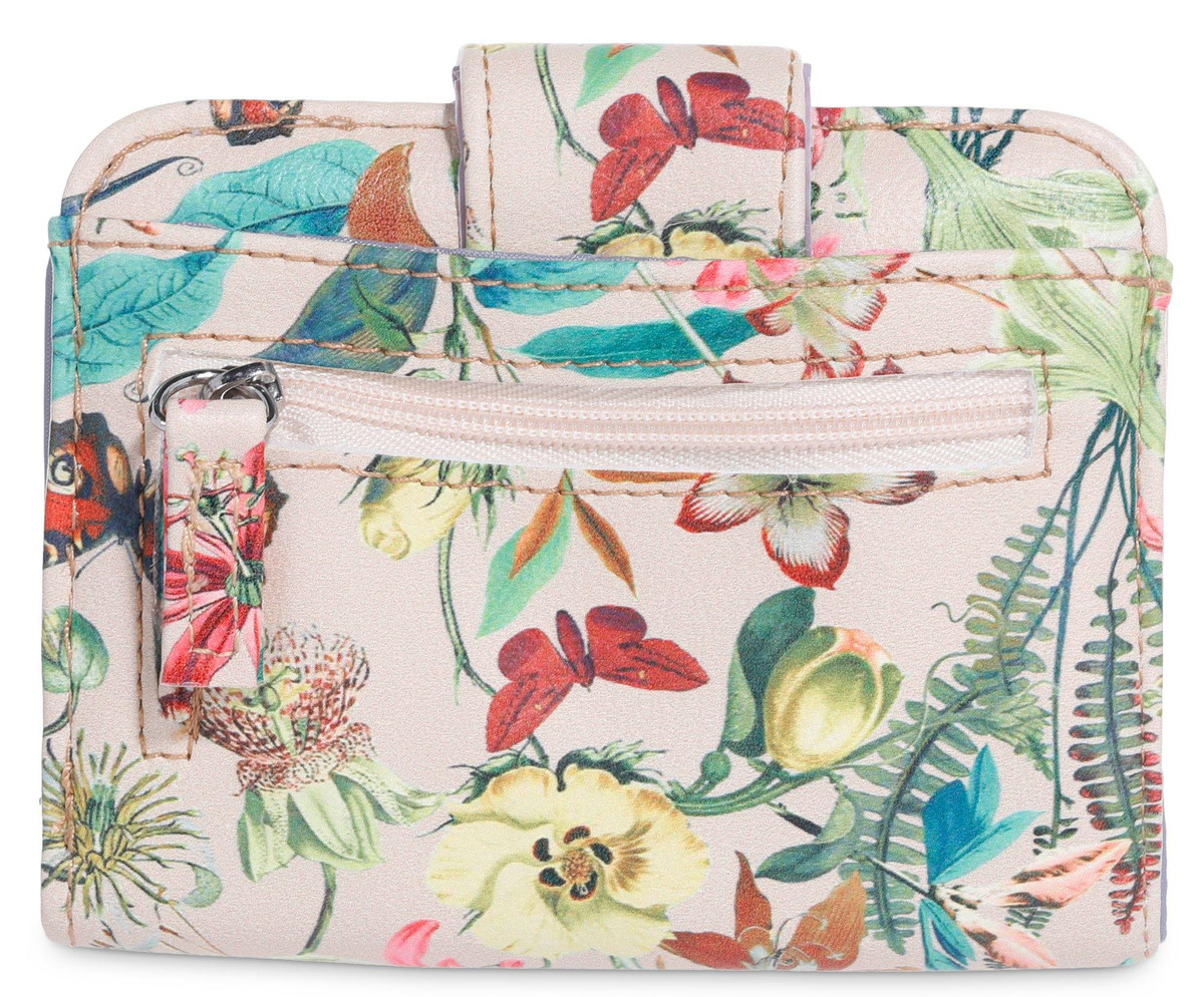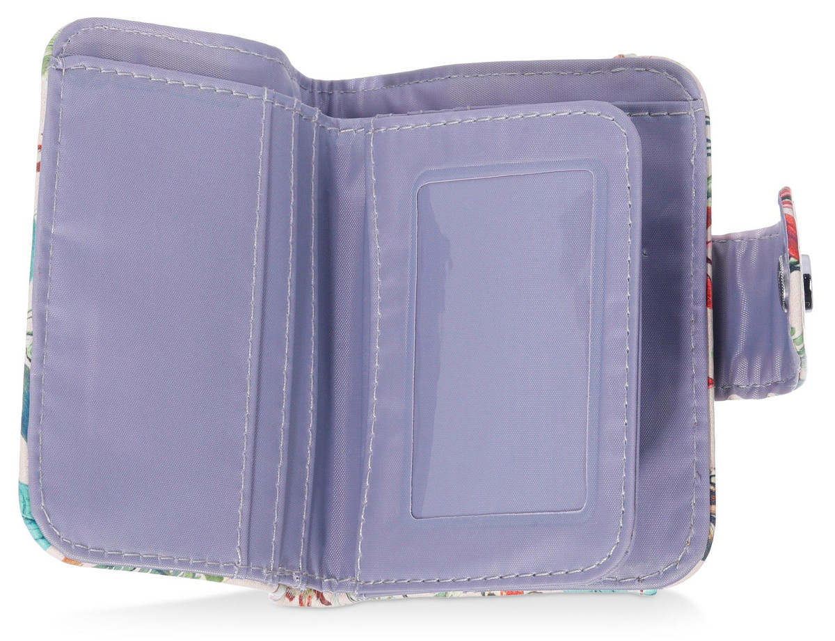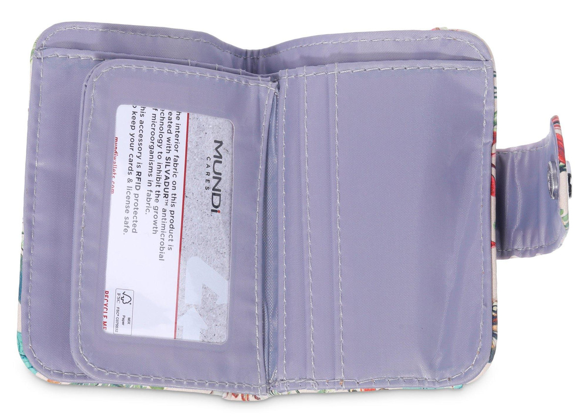 Mundi’s mini bifold wallet has a slim profile and is built with the security of RFID-blocking technology for protection. It’s crafted from smooth faux leather and features a silver-tone metal top clasp lock and a back zip pocket pocket for your coins and receipts. Plus, it has an ID window and multiple slip pockets to organize your cards and a snap-button closure for added safety.