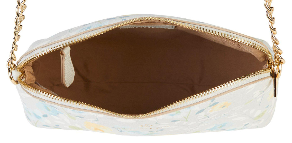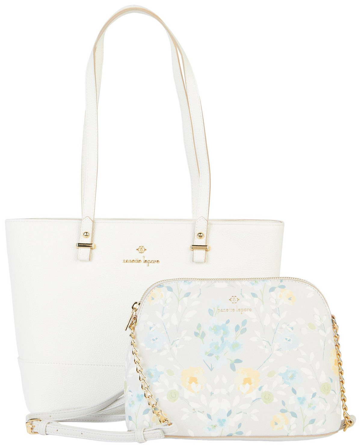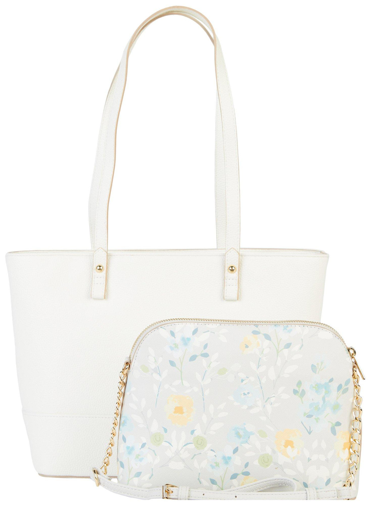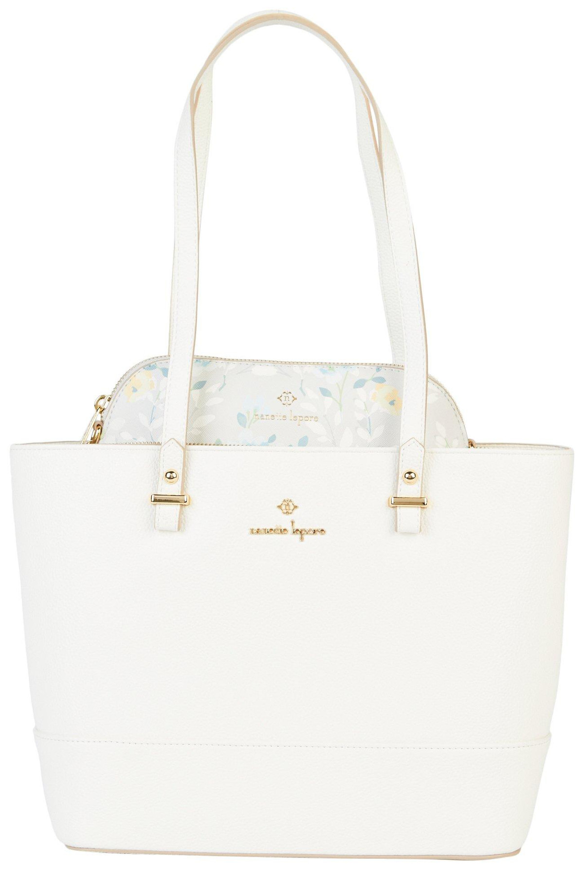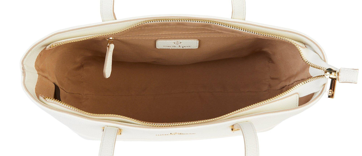 A structured tote bag comes with a separate pouch to ensure your belongings are well-organized and easy to reach. Includes tote and crossbody pouch. Tote: 10 in H x 11 in W x 4.5 in D. Pouch: 7.5 in H x 9.5 in W x 3.5 in D