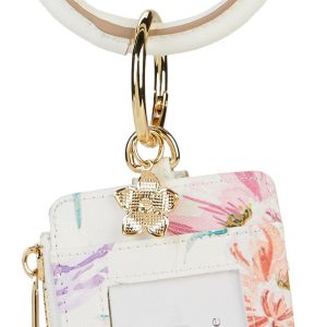 Stay stylish and organized with the Nanette Lepore Candi Card Case Flower Bracelet Walleta chic and multifunctional accessory designed for convenience and flair. Featuring a unique bracelet design and compact card case, it effortlessly combines fashion with practicality. Features removeable key ring and card case. Cardholder has 2 card slots with snap closure, 1 ID window and 1 zippered pocket. Measures: 4.75 in H x 3.25 in W x .25 in D.
