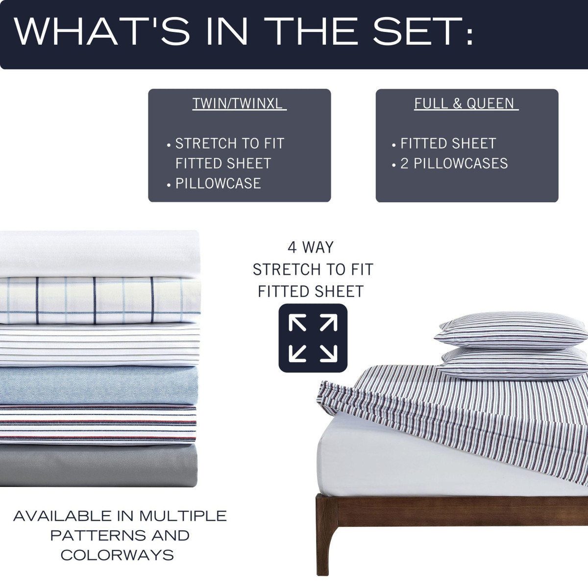 Bring comfort and style to any space with the Aevery Stripe Sheet Set by Nautica. Designed for easy dorm-to-home transitions, each set includes a stretch-fit fitted sheet and pillowcase that fit both twin and twin XL mattresses. With wrinkle-resistant, machine-washable fabric and classic stripes, it is the perfect back-to-school essential. Machine washable for easy care.